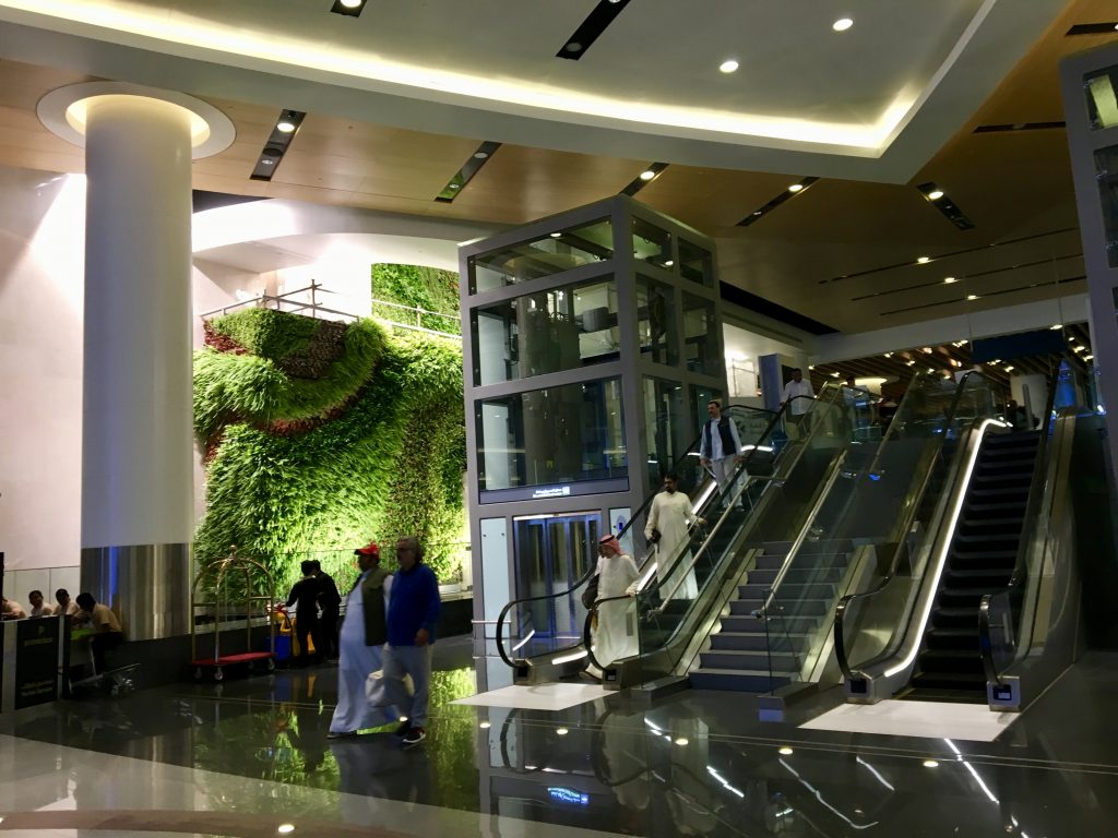 Déjà l’aéroport nous impressionne par son luxe , son marbre partout, ses murs végétaux, et même ses toilettes!