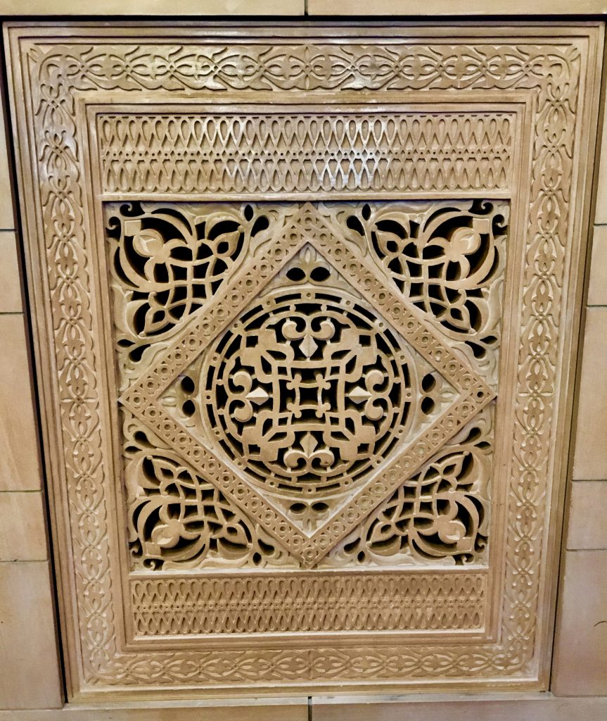 Elle est prévue pour 22 000 âmes, son grand tapis mesure 4200 m2 et pèse 21 tonnes, il est arrivé en 58 morceaux qui ont été assemblés sur place par 36 femmes. Le lustre pèse 8 tonnes et comporte plus 1000 ampoules et je m’arrête là.