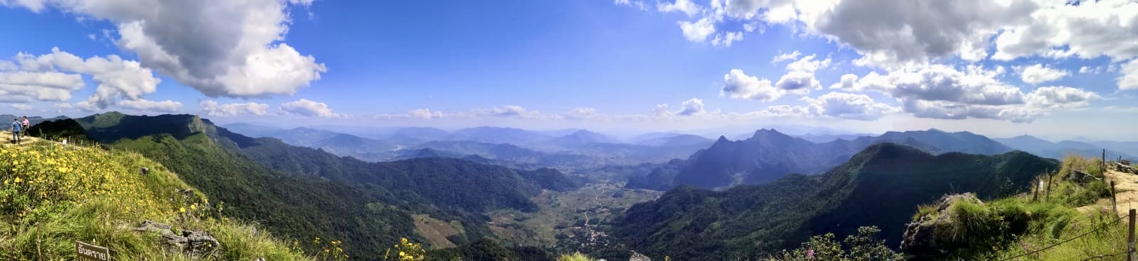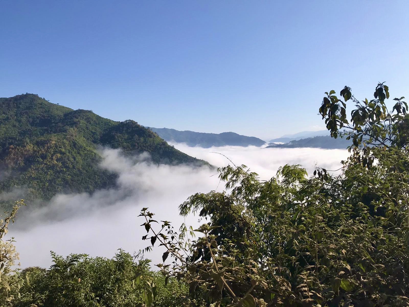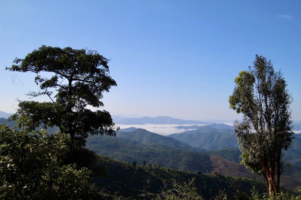 La route longe la frontière Thaïlande/Laos sur les crêtes, le paysage est superbe, et le bitume bien meilleur qu’au Laos.
