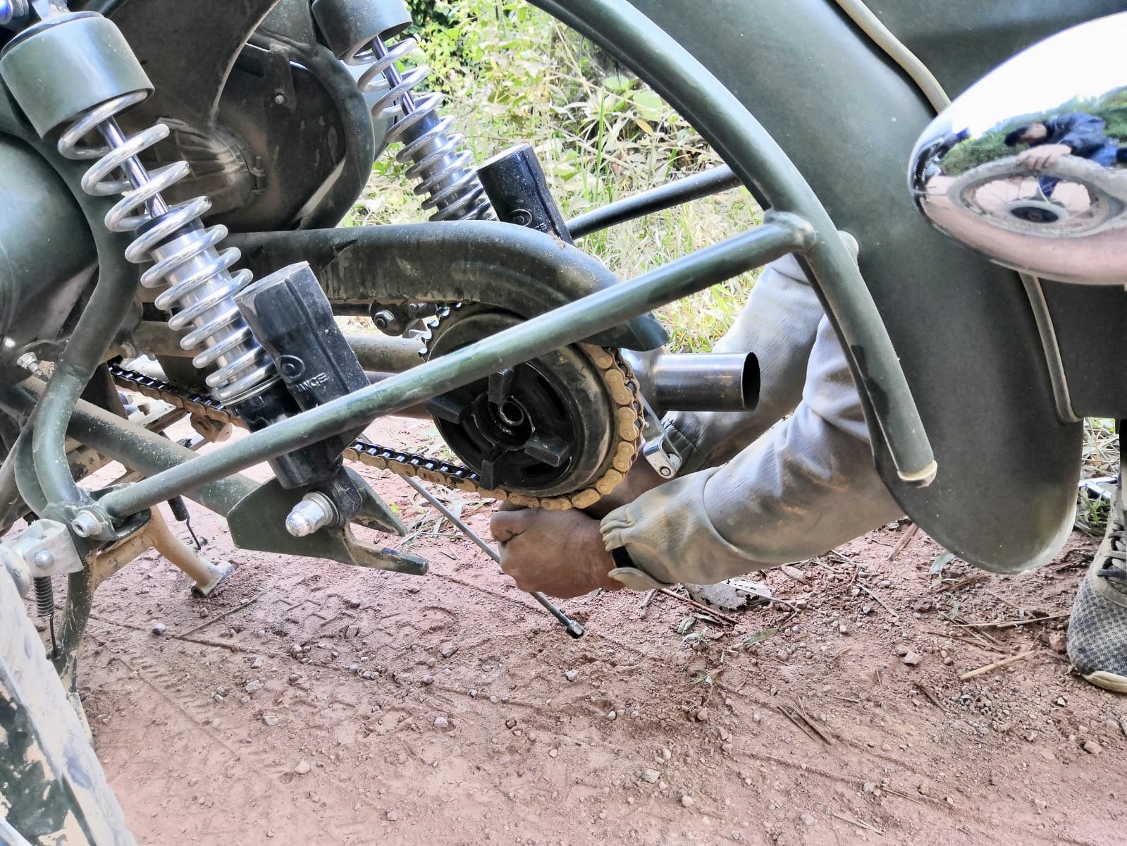 Pourquoi me suis-je retrouvée face à cette butte de terre rouge où je me suis envolée, moi d’un côté et la moto de l’autre?  L’atterrissage fut rude, mon épaule n’a pas vraiment apprécié, et la moto a du être remise en condition par Leg qui a réparé sur le bord de la route, et est reparti dessus puisque je ne pouvais plus conduire et j’ai fini la route dans le camion balai.