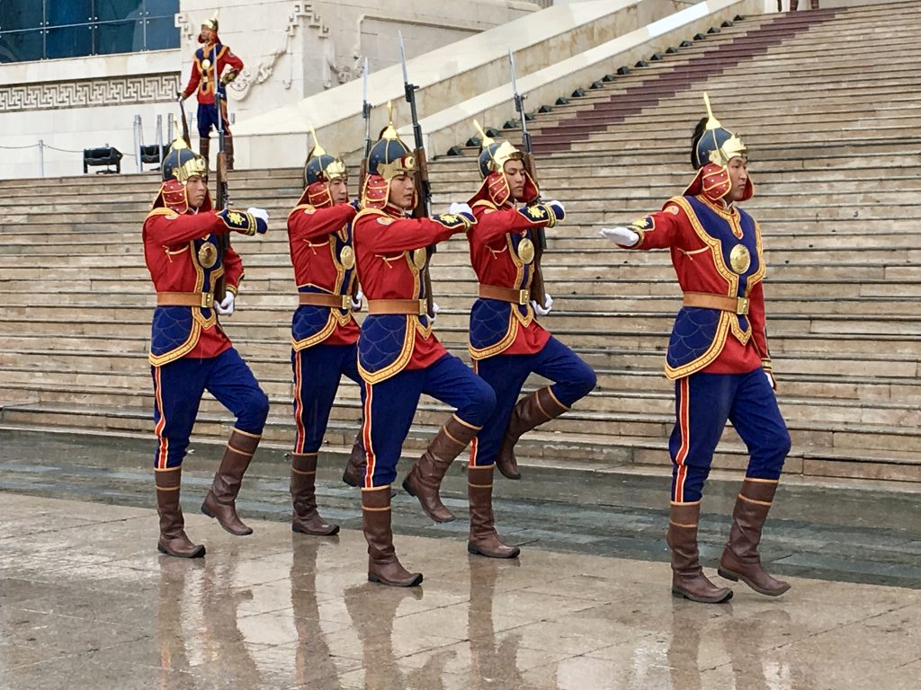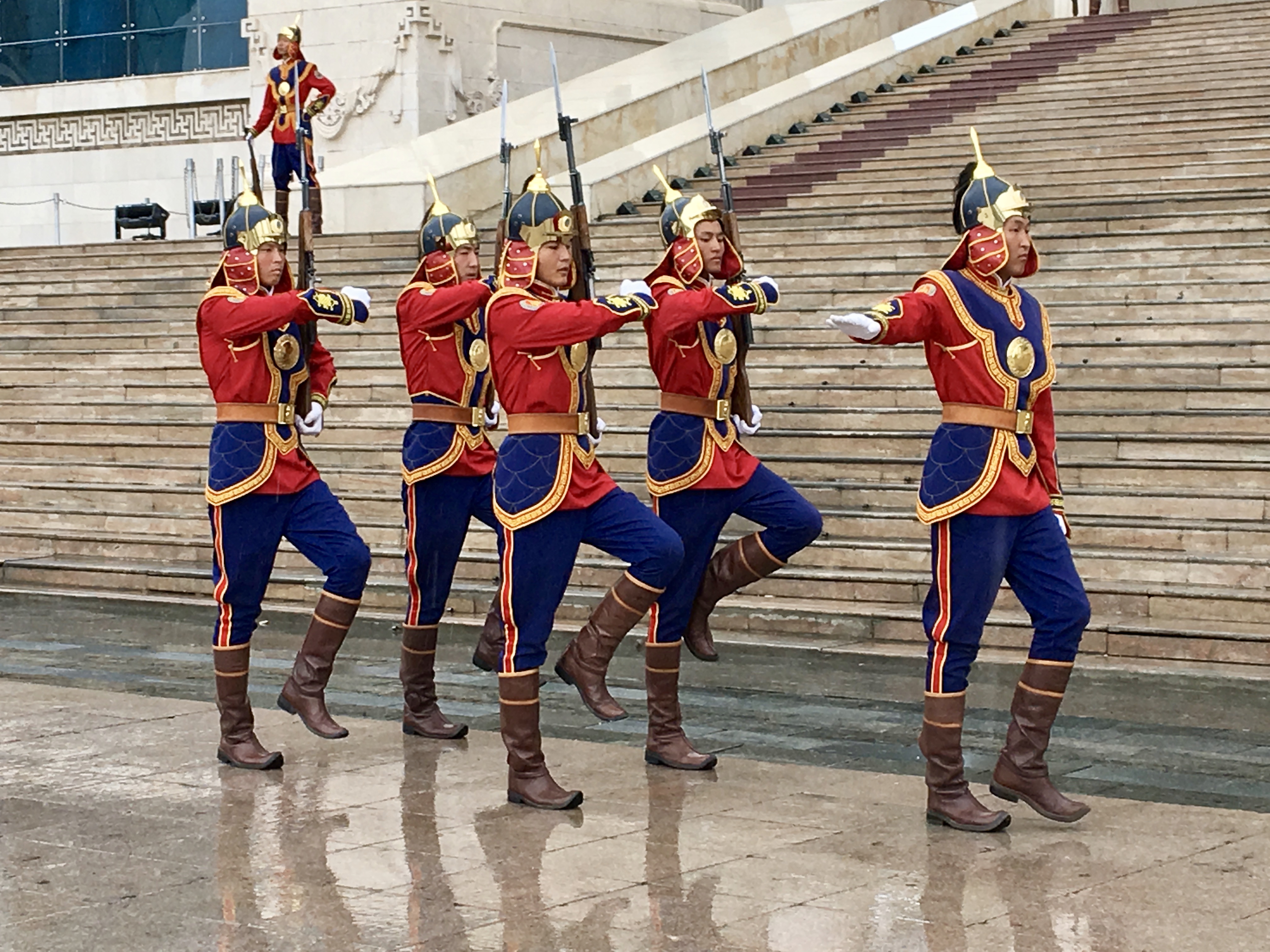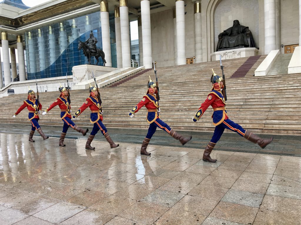 Un dernier tour en ville sous la pluie avant de reprendre l’avion, justement c’est la relève de la garde devant le parlement.