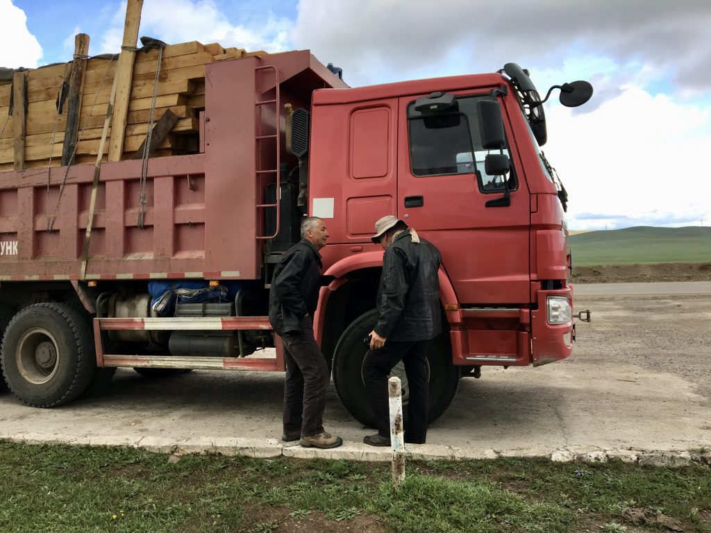Pause café toutes les heures pour réveiller les troupes qui s’amollissent à rouler sur l’asphalte trop lisse (enfin,, il y a quand même un quelques nids de poule). Les voitures que nous croisons nous saluent par des appels de phare, mais la véritable aventure est terminée et nous dormirons ce soir dans une confortable chambre d’hôtel en ville, sans rien à faire sécher.