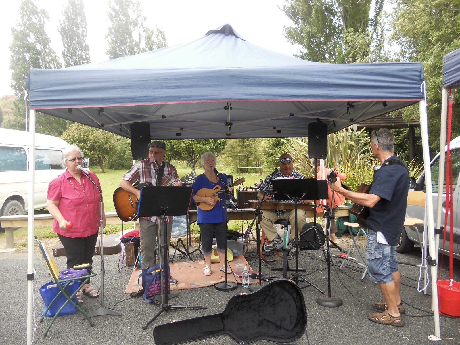 Avant de quitter Paparoa, une petite photo de notre adorable bed and breakfast tenu par une charmante dame très « granola » avec un petit déjeuner somptueux tout fait maison, puis visite obligée du marché du samedi, avec le dernier groupe de musiciens en vogue: