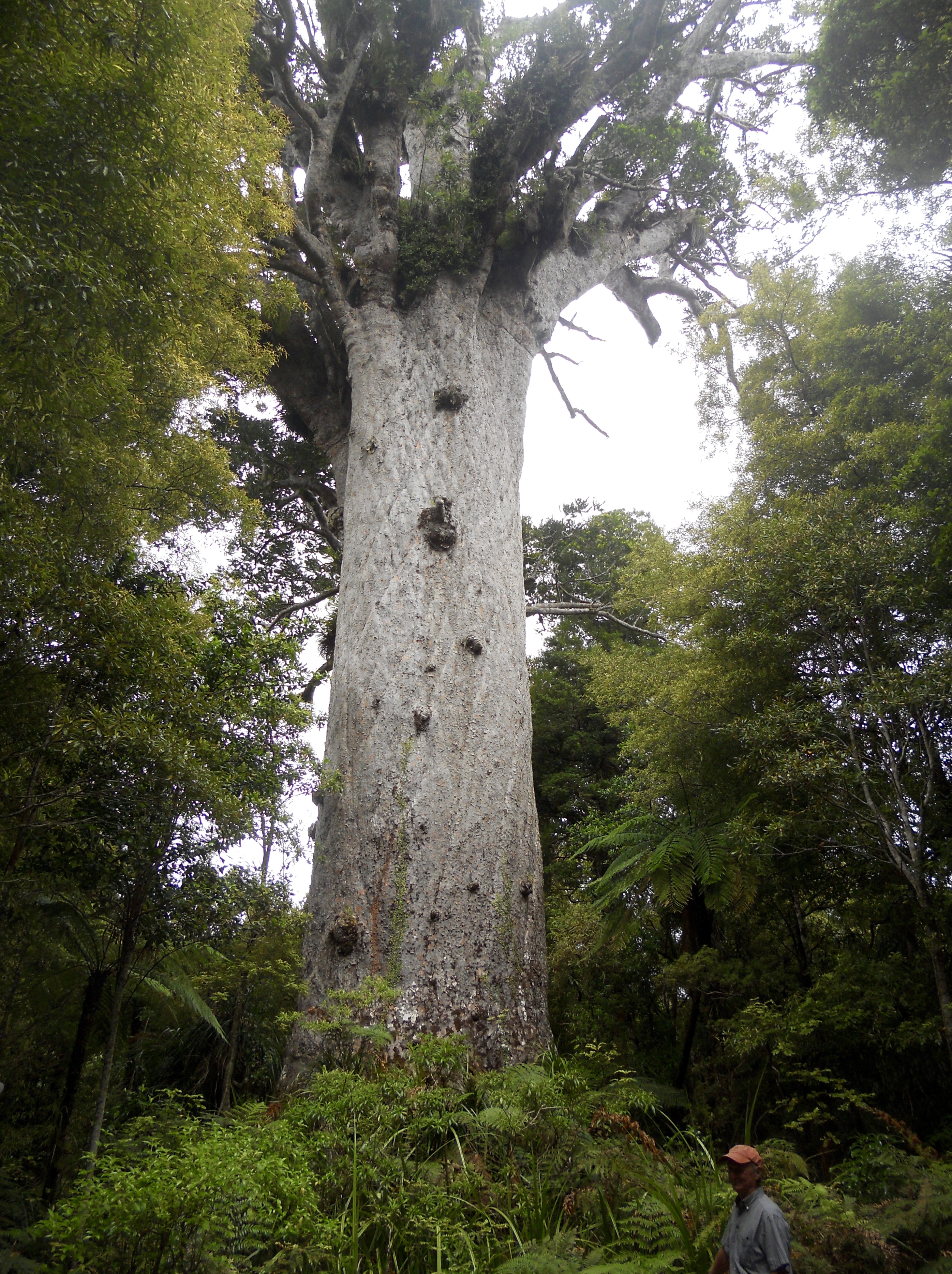 Traversée de la forêt de Waipoua, célèbre pour ses énormes arbres kauris (Agathis australis pour les botanistes de mes lecteurs) qui peuvent atteindre plusieurs mètres de diamètre. Voici Te Matua Ngahere, le père de la forêt, 16.5 m de circonférence, puis Tane Mahuta, le seigneur de la forêt, 51,5 m de haut, de jolis bébés, non?