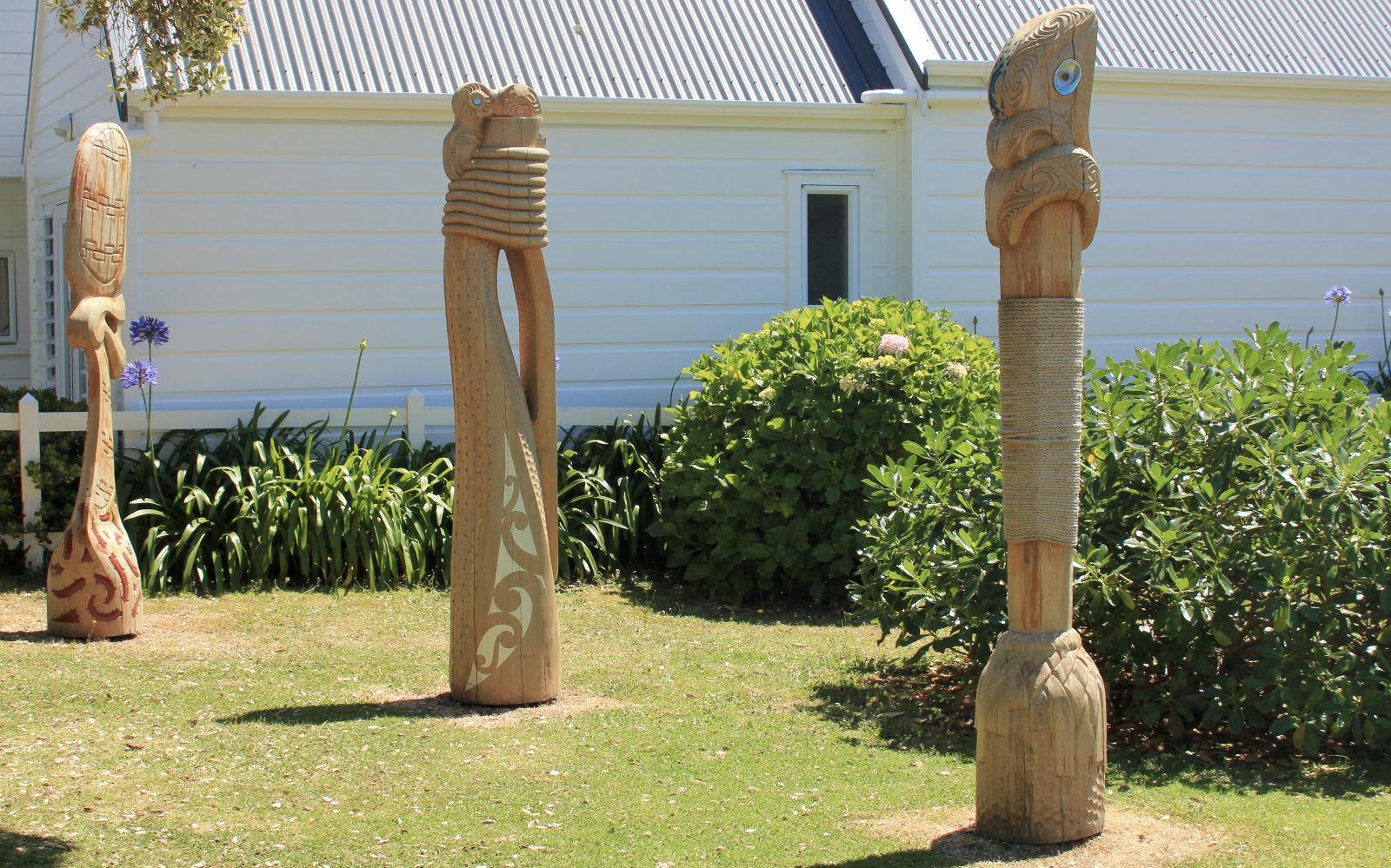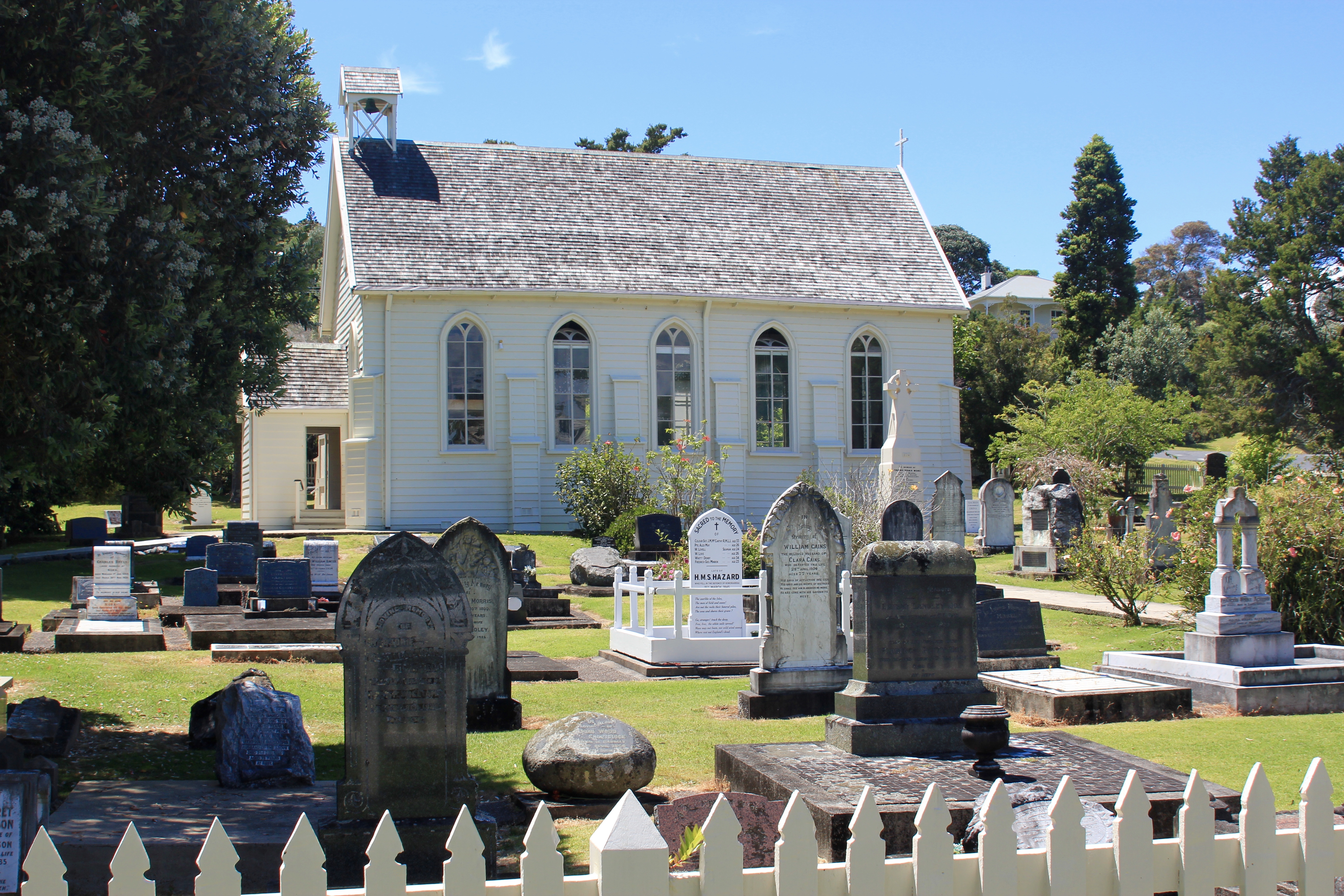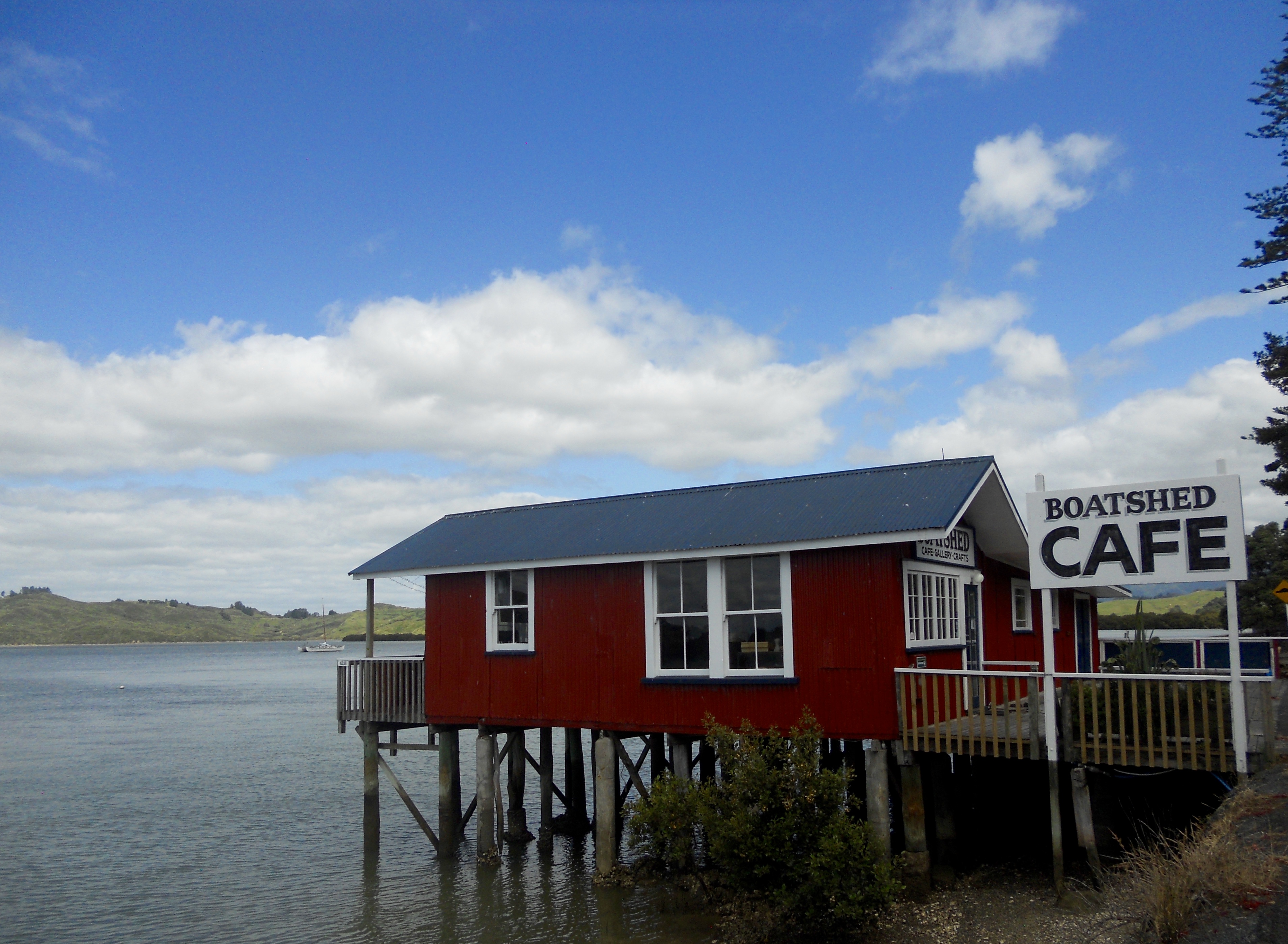 La Bay of Islands porte bien son nom: plus de 150 îles dont beaucoup sont sauvages, le tout dans une eau limpide variant du turquoise au bleu foncé, avec beaucoup de voiliers et, bien sûr, des croisières autant qu’on en veut pour aller voir les îles, les dauphins, les côtes escarpées, les criques, les grottes, etc.  Nous nous contenterons du ferry pour aller découvrir Russell à pied, un petit port des environs et lieu historique où nous visitons une mission construite en 1839 par l’évêque Jean Baptiste Pompallier de Lyon, où il a installé une tannerie et un atelier de reliure pour faire des livres en Maori qui prêchaient la bonne parole, vous l’avez deviné. Néanmoins, les ateliers subsistent et fonctionnent encore, nous savons maintenant comment tanner une peau et relier un livre.
