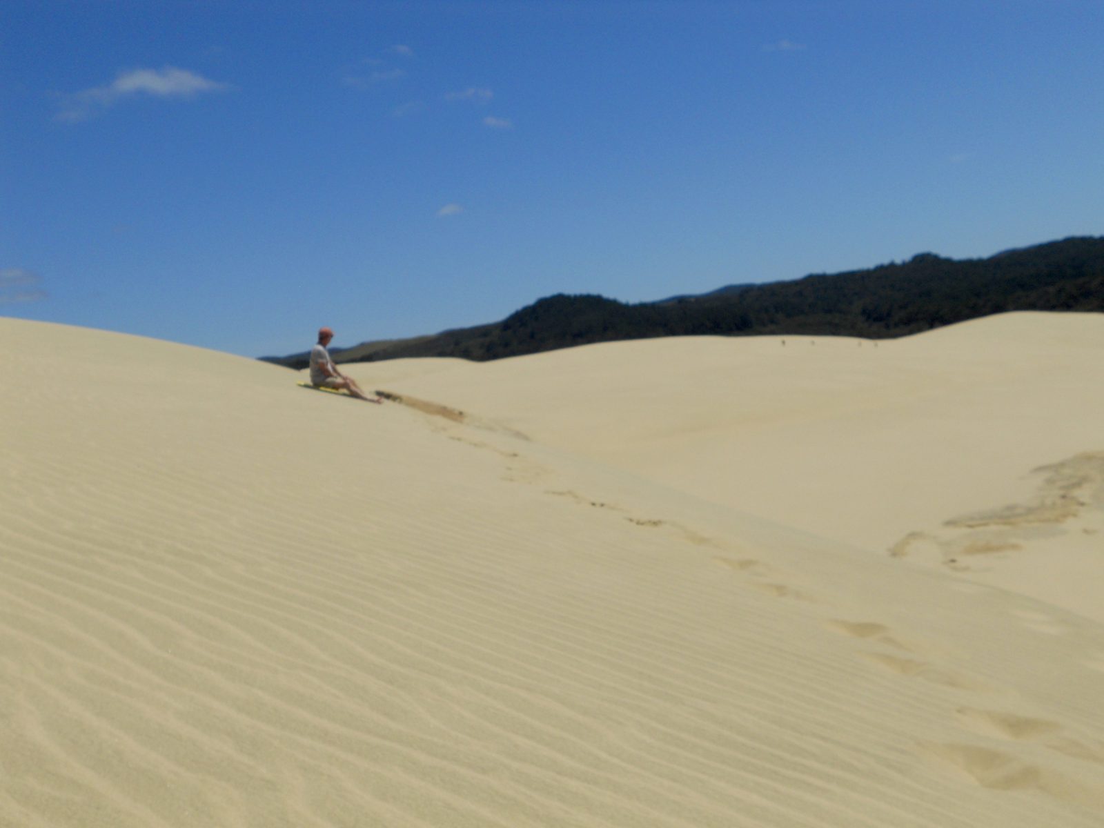 Quelques petites glissades dans les dunes sur une planche spécialement prévue à cet effet: