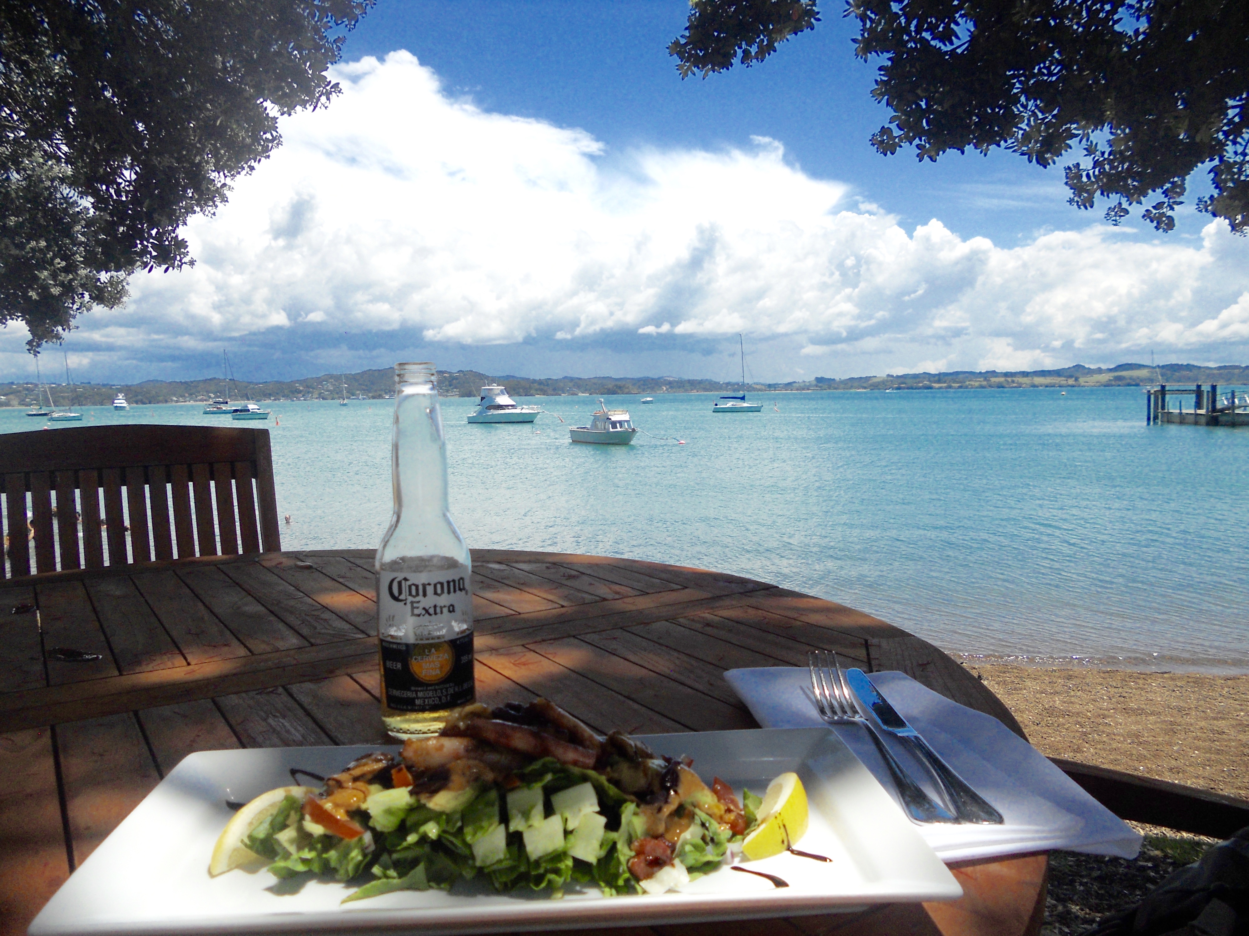 Et nous arrivons à la Bay of Islands pour déguster un thon fraîchement pêché, mariné et cuit à merveille, arrosé d’un excellent Chardonnay de la région de Malborough, NZ, que demander de plus?