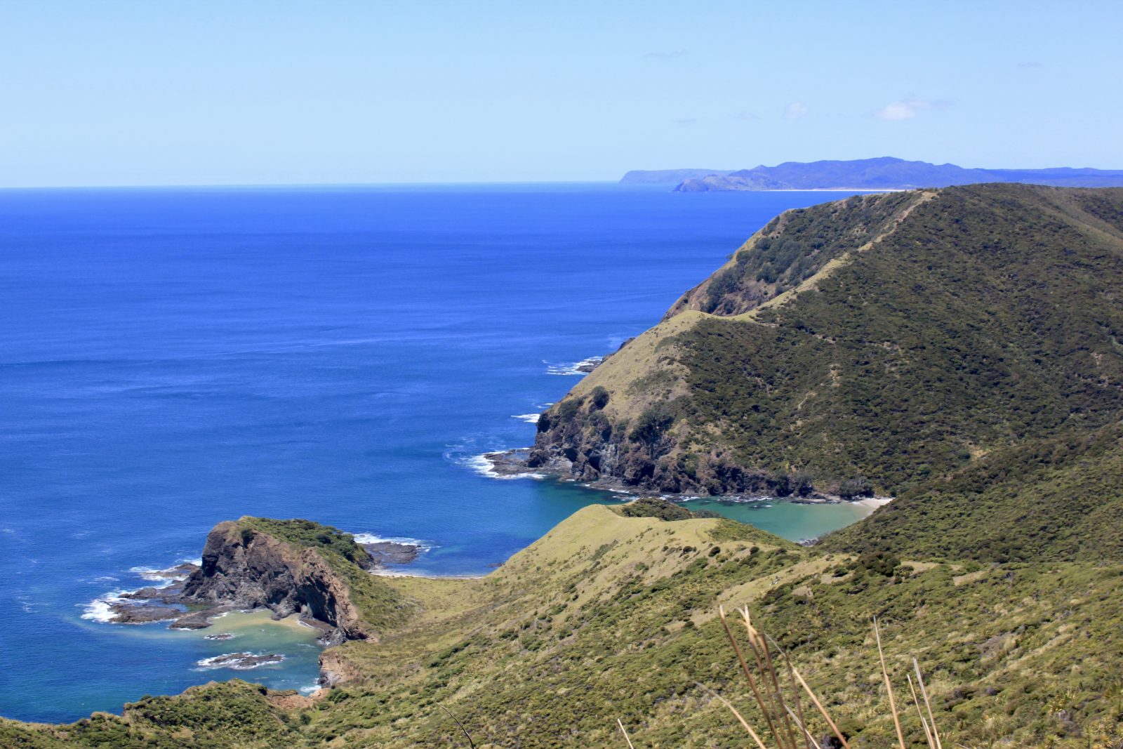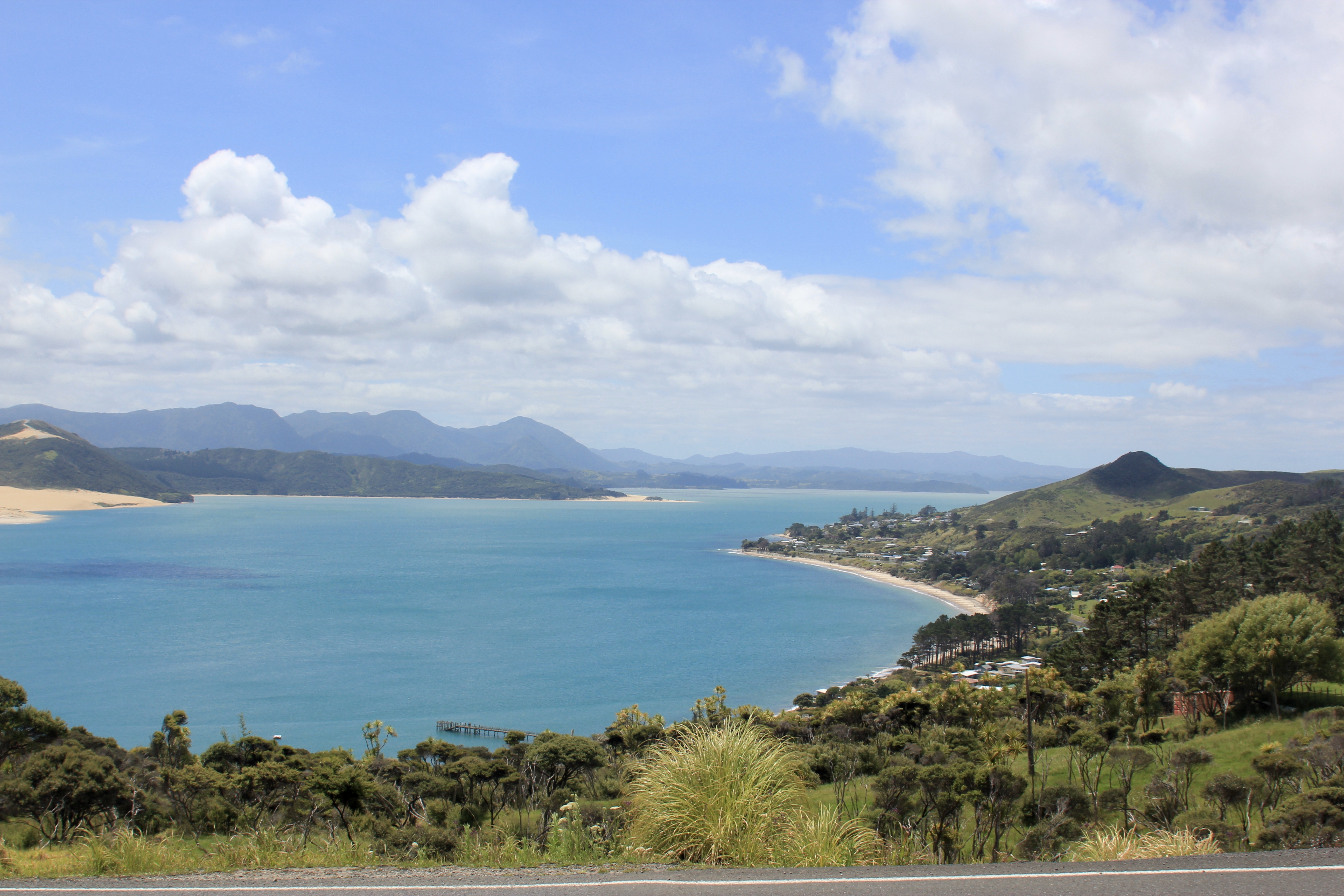 Après un passage de ferry, trois faisans qui traversent tranquillement, beaucoup de terrains de rugby  -on comprend pourquoi les Tout Noirs sont si forts, on joue au rugby partout ici- et un grand nombre de virages dans les montagnes du nord de la péninsule, voici la mer et ses baies magnifiques.
