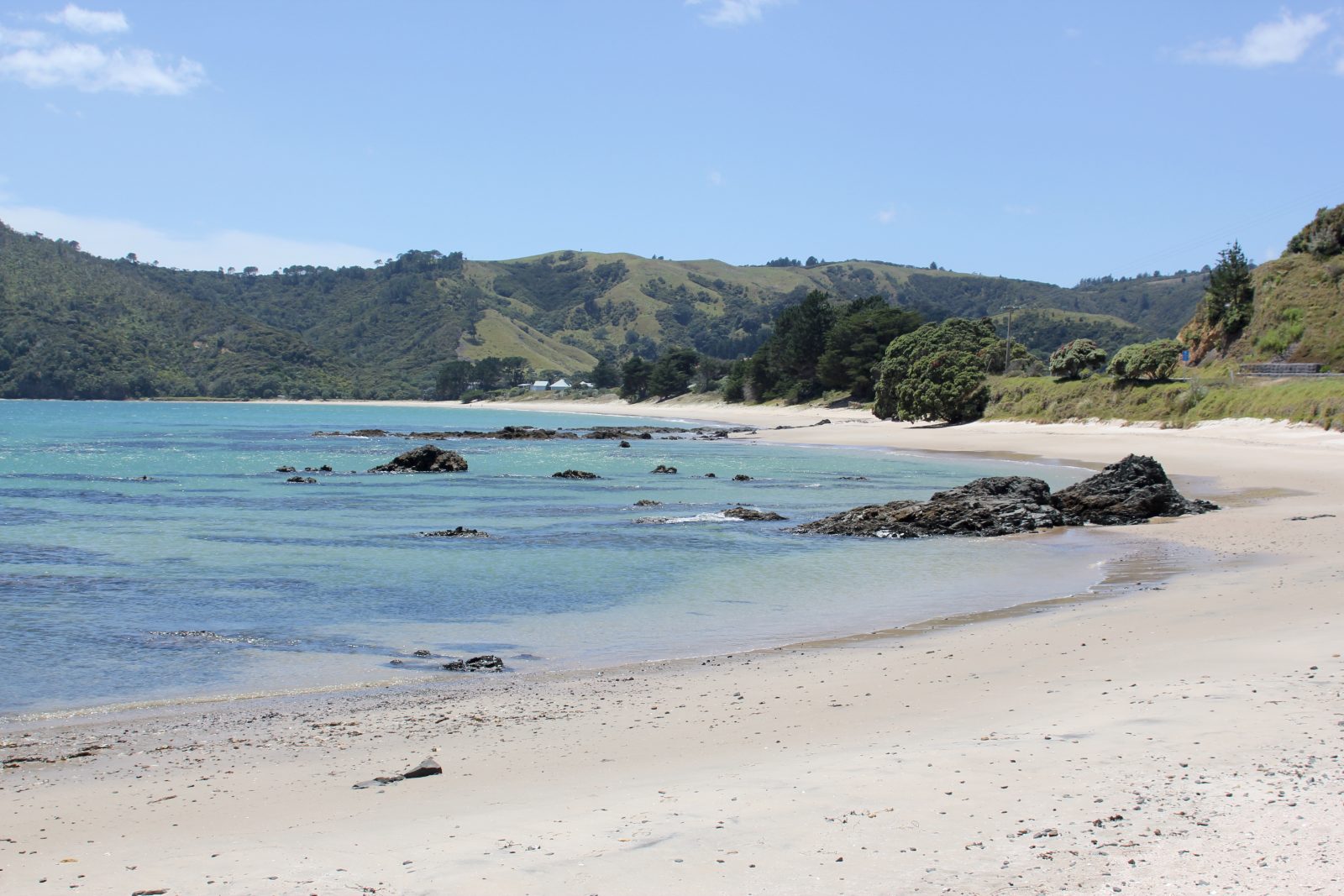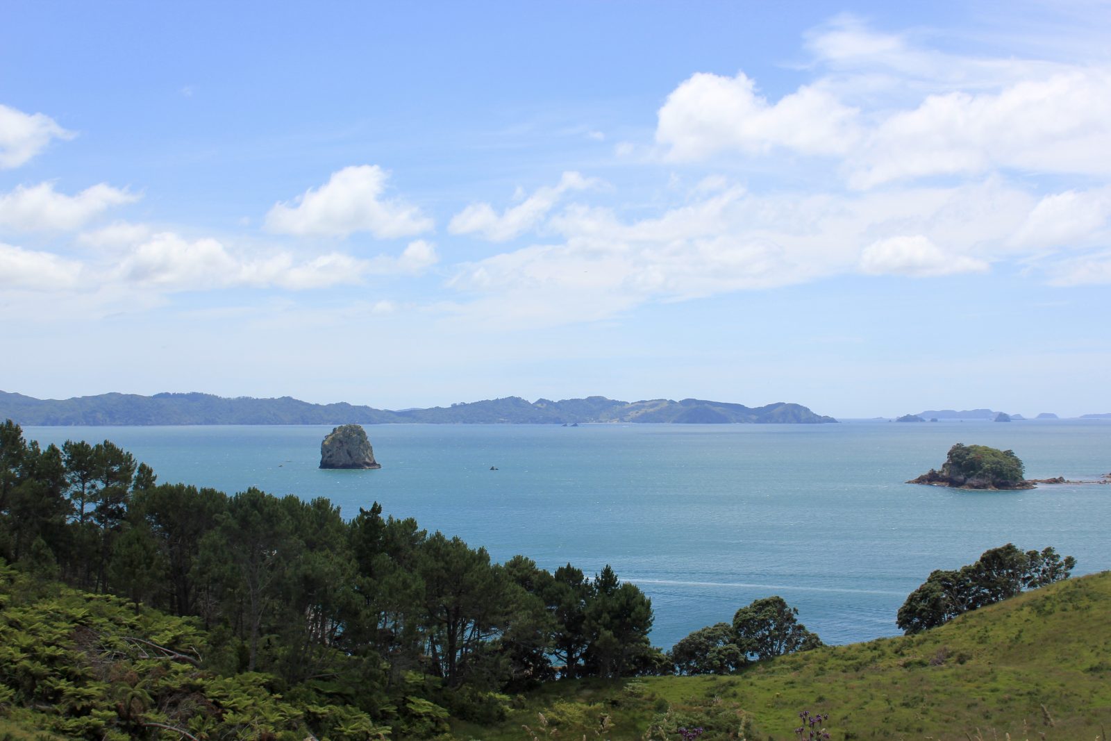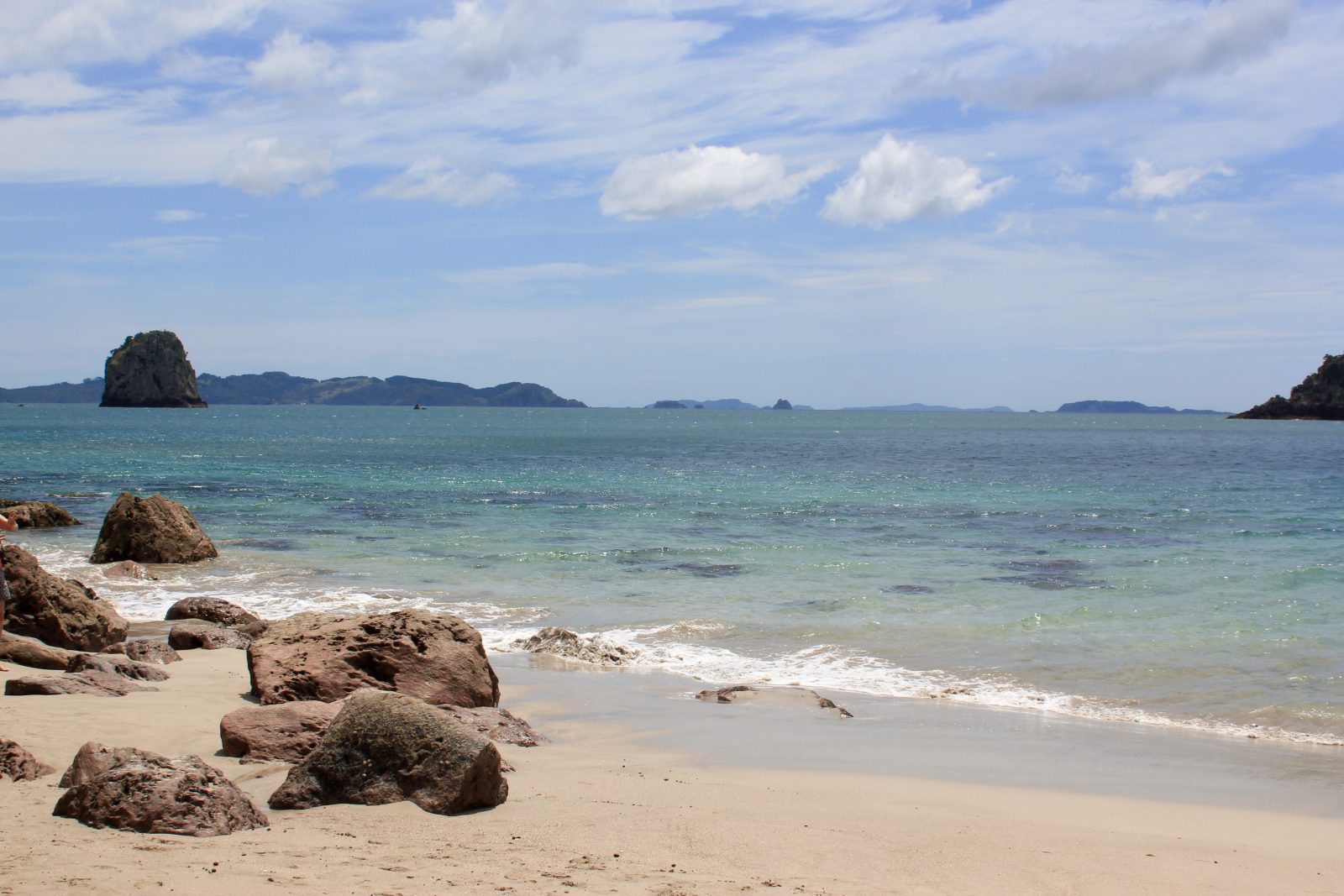 Néanmoins, nous arrêtons ce soir au bord de la Mercury Bay, et les plages d’ici ne craignent guère la concurrence avec leur panorama sublime.