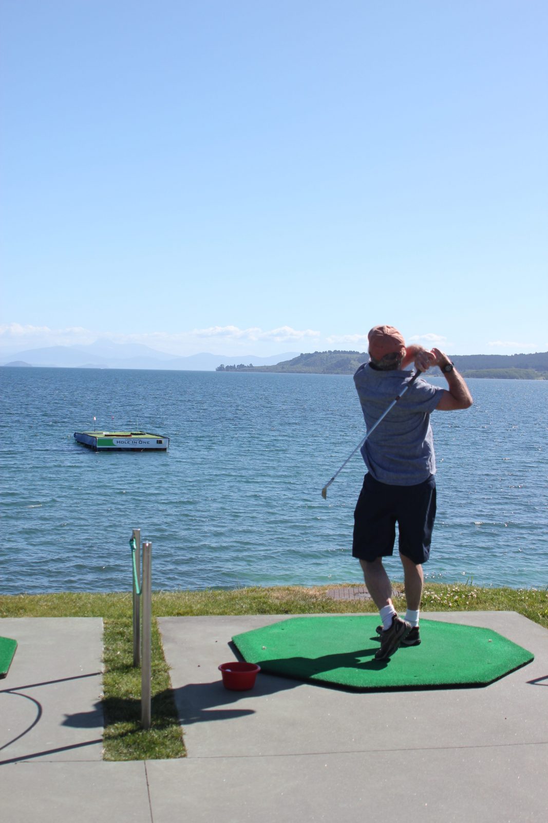 Halte à Taupo pour une belle balade au bord du lac où Pilou s’est essayé au « hole in one »: inutile de dire que les plongeurs auront quelques balles à récupérer dans l’eau. Et toi, que fais-tu dans la vie? Je suis plongeur de balles de golf. Ah bon.