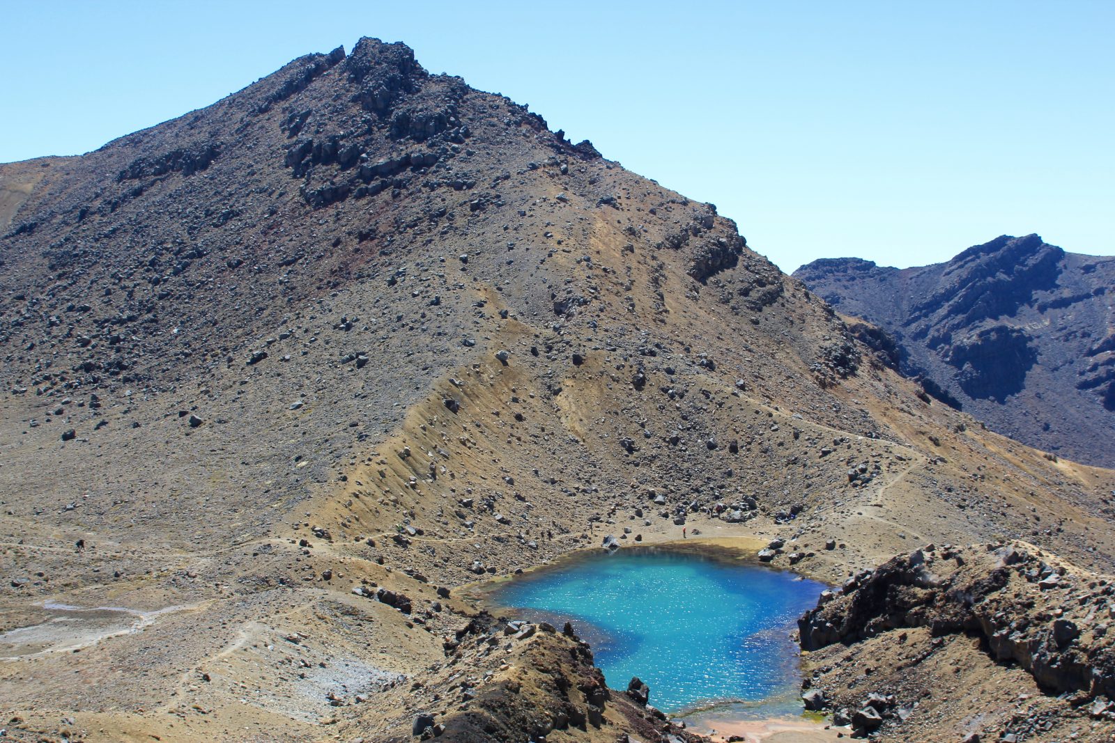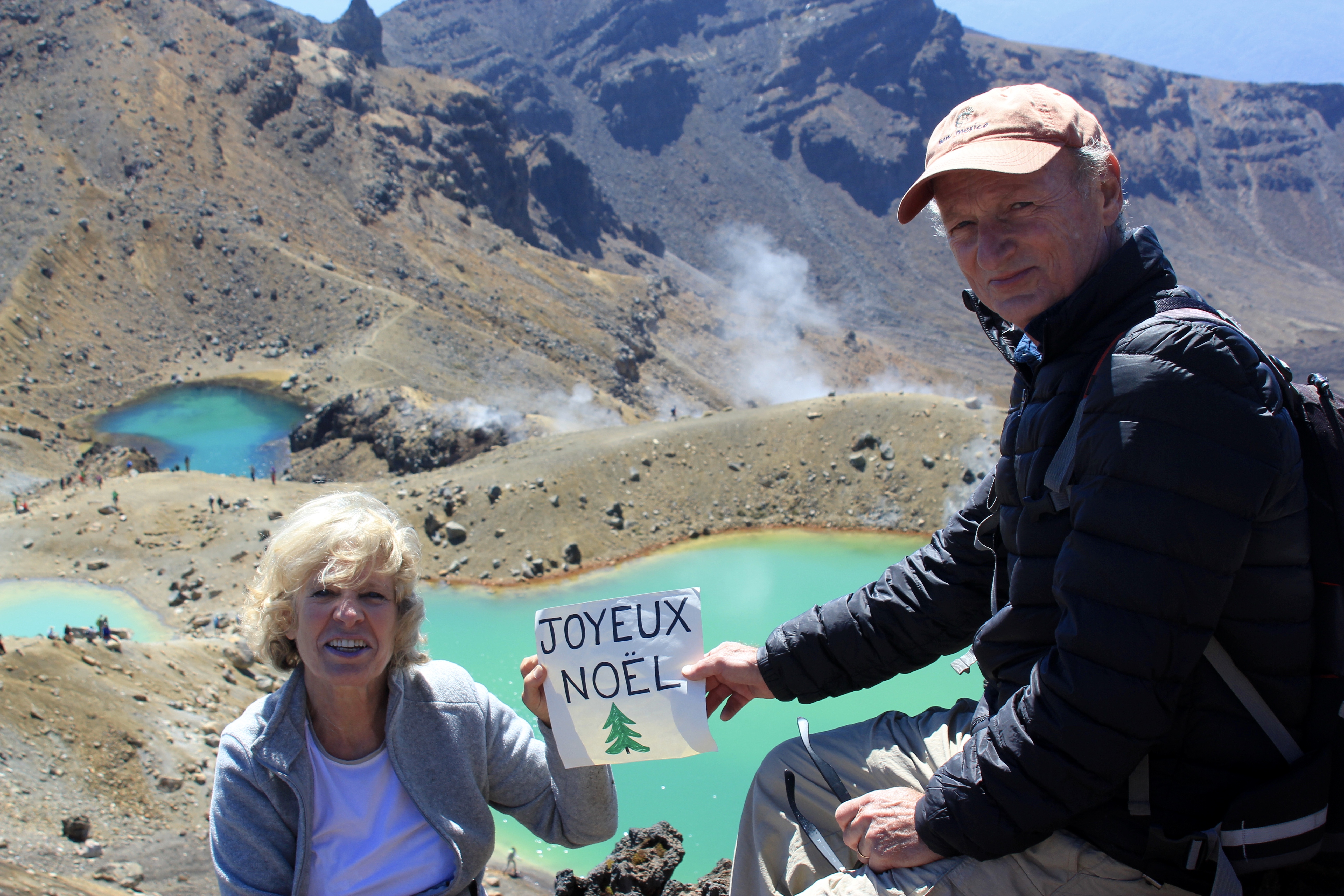 Départ matinal pour aller marcher sur les volcans en parcourant le Tongariro Alpine Crossing, une superbe rando, une des « New Zealand Great Walks ». Un paysage très minéral, des lacs aux couleurs surnaturelles, des fumées volcaniques qui sortent de partout avec une forte odeur de souffre. Nous n’étions pas tout seuls, mais que c’était beau!