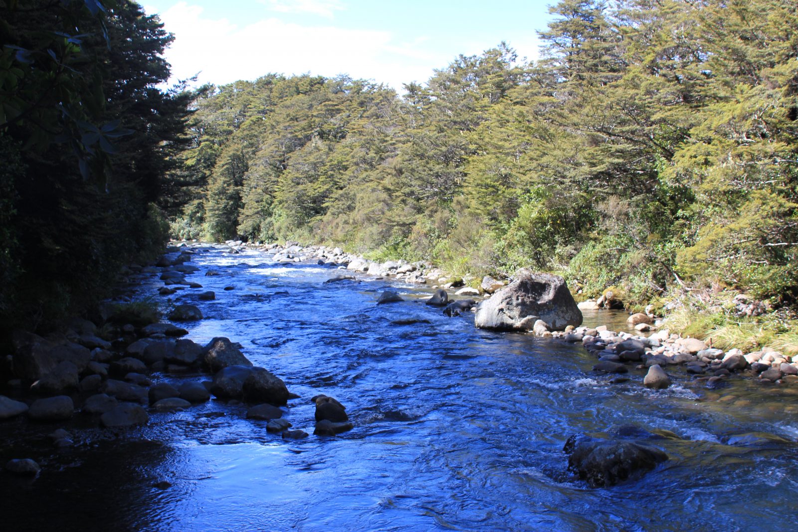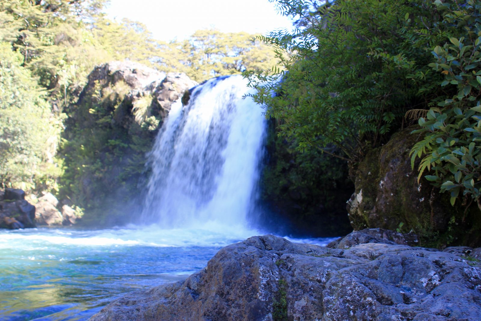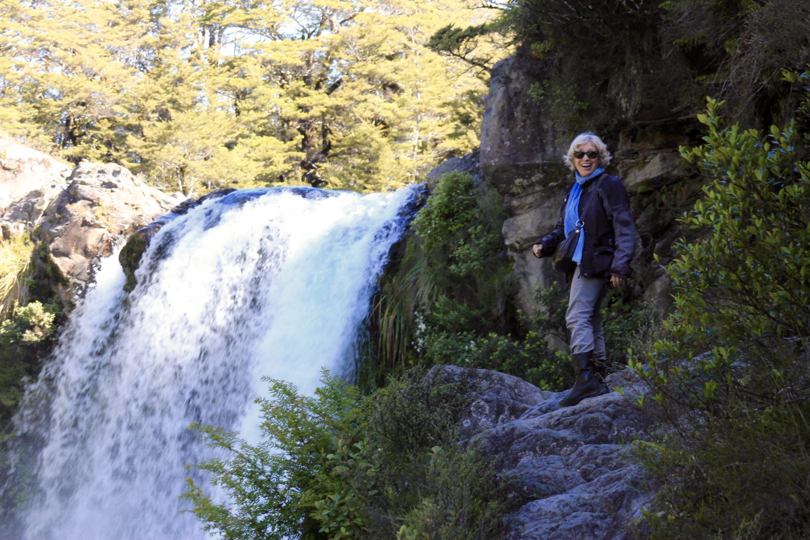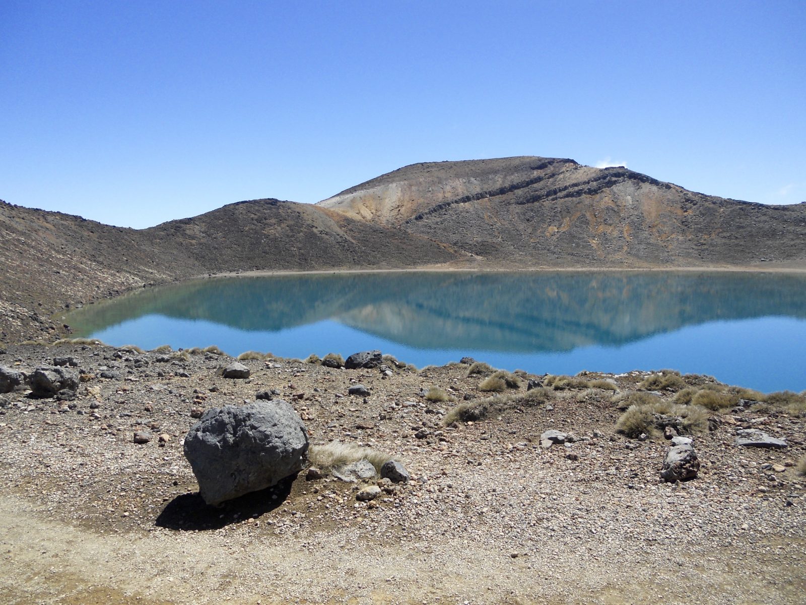 La route longe le lac Taupo, superbe dans sa caldera sur 600 km² avec en arrière plan des montagnes de plus en plus hautes dont nous nous approchons. Direction le parc national Tongariro, volcans avec fumerolles et sommet enneigé.