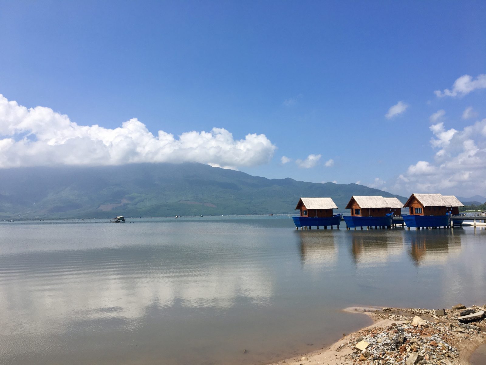 Puis la lagune Lang Co et ses élevages d’huîtres perlières dans un mélange d’eau fraîche et d’eau de mer.