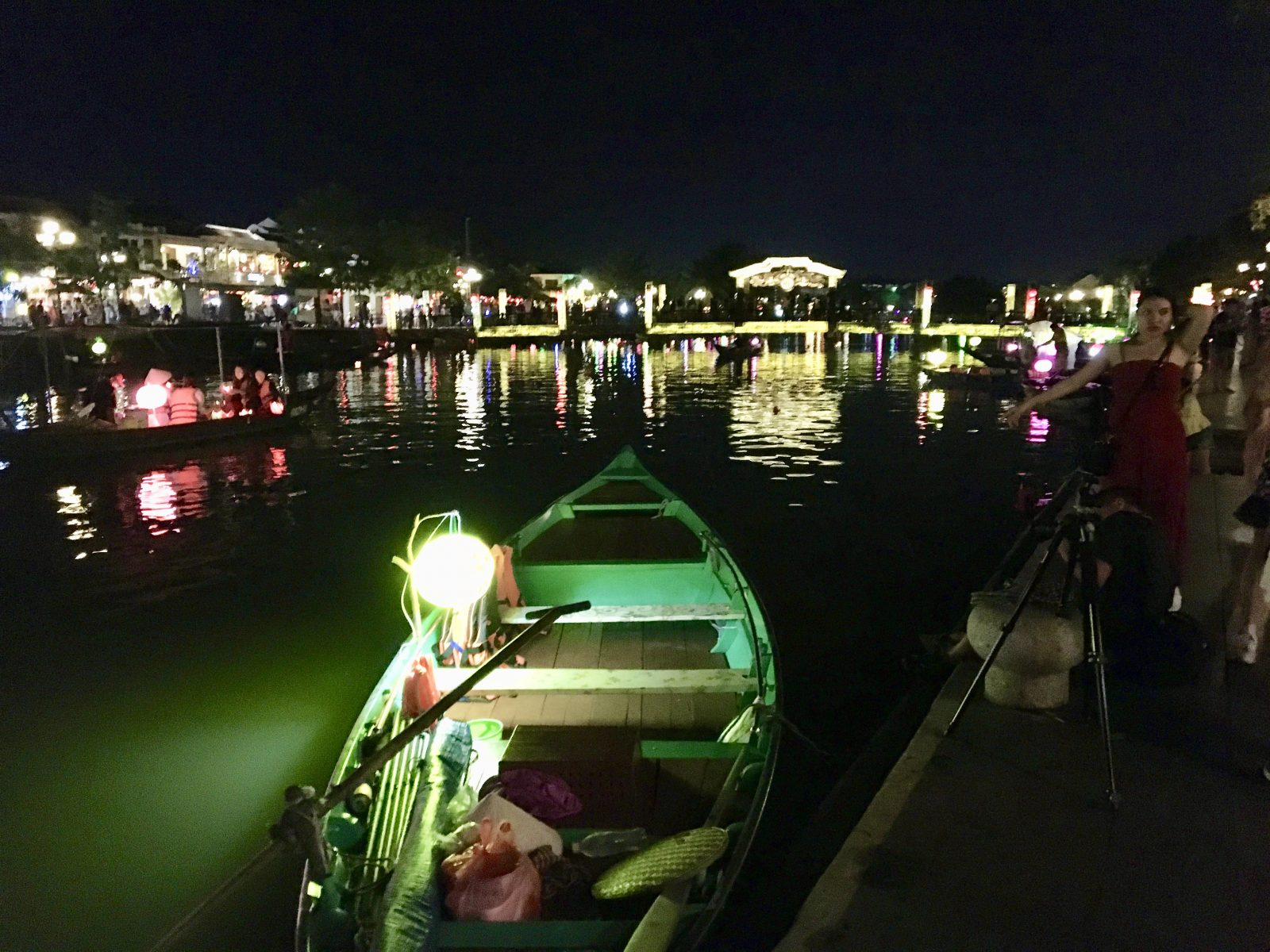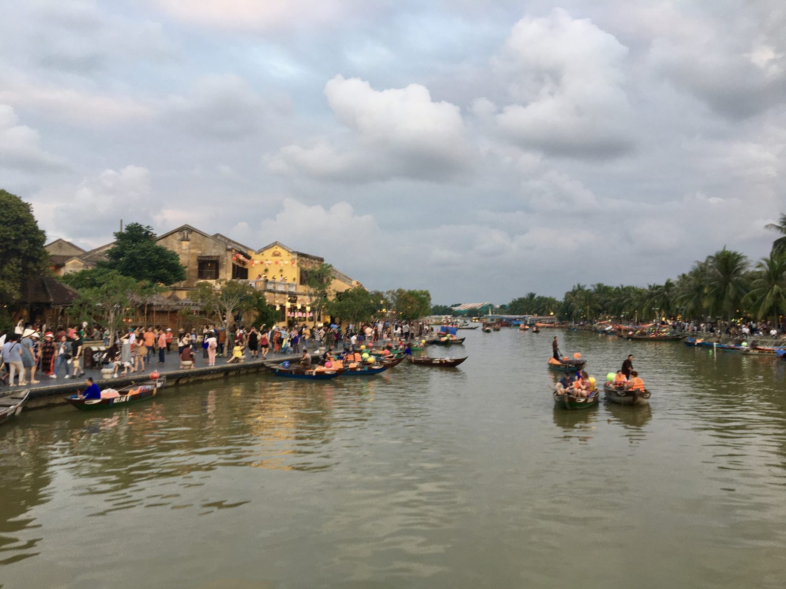 Il y a foule dans les rues piétonnes, qui sont malheureusement envahies de boutiques de plus ou moins bon goût, et de vendeurs à la sauvette de colifichets et babioles insignifiantes made in  China. C’est dommage car la ville a une ambiance de fête avec sa rivière dont les ponts et les quais sont illuminés de lampions.