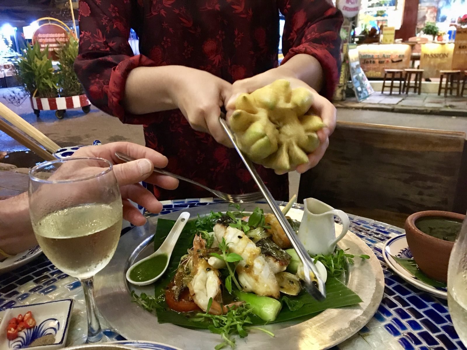 Arrivée à Hoi An où le chauffeur nous dépose sous une jolie pluie qui ne durera pas.