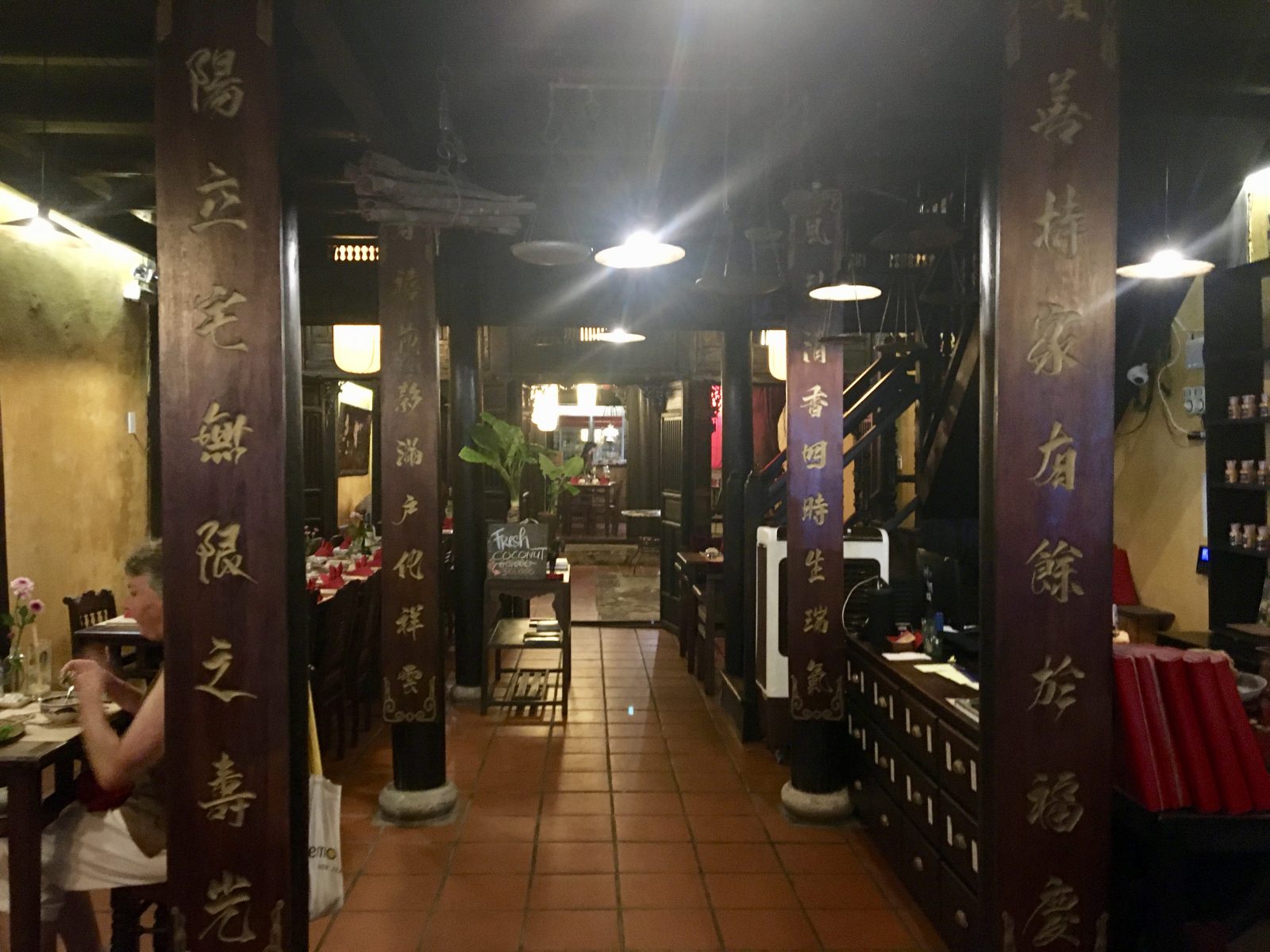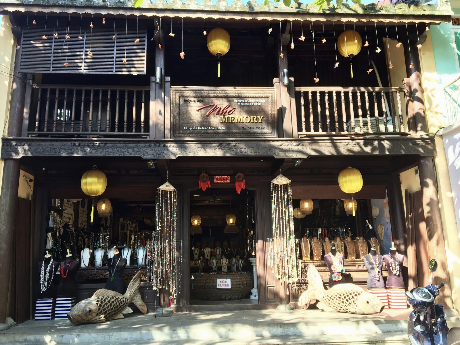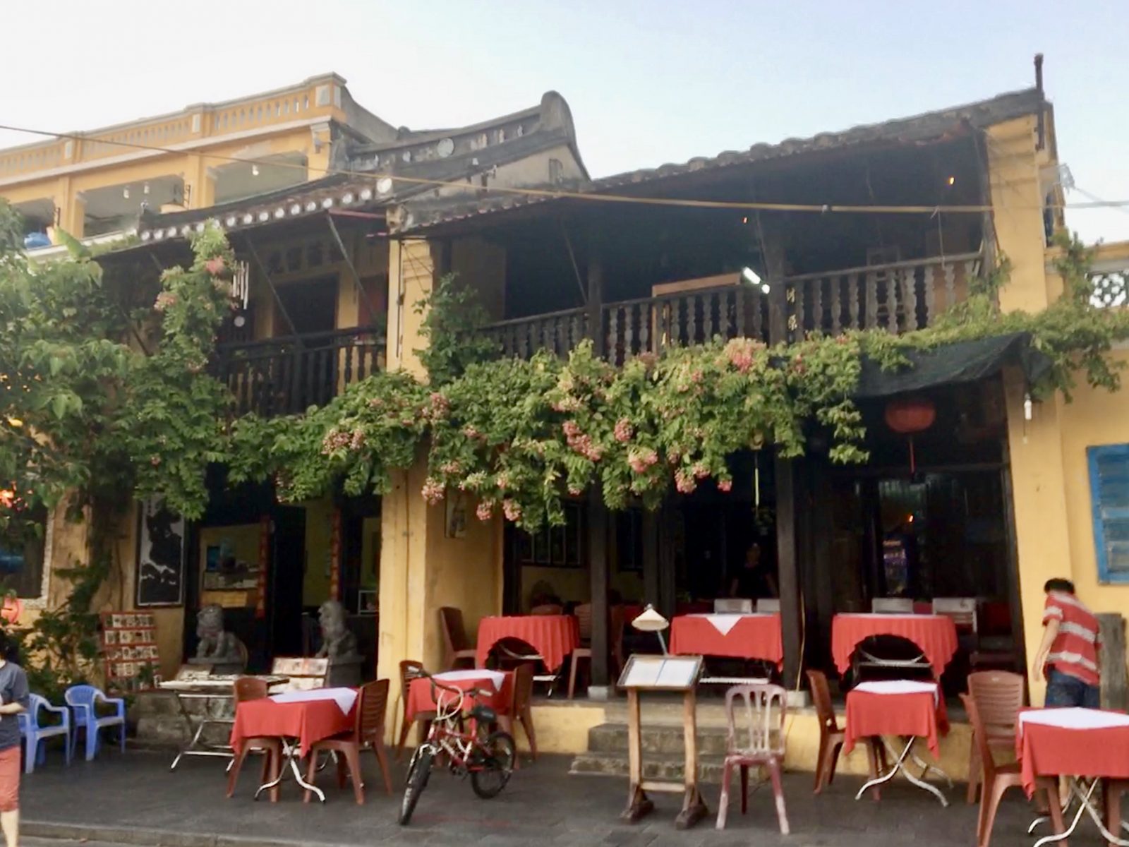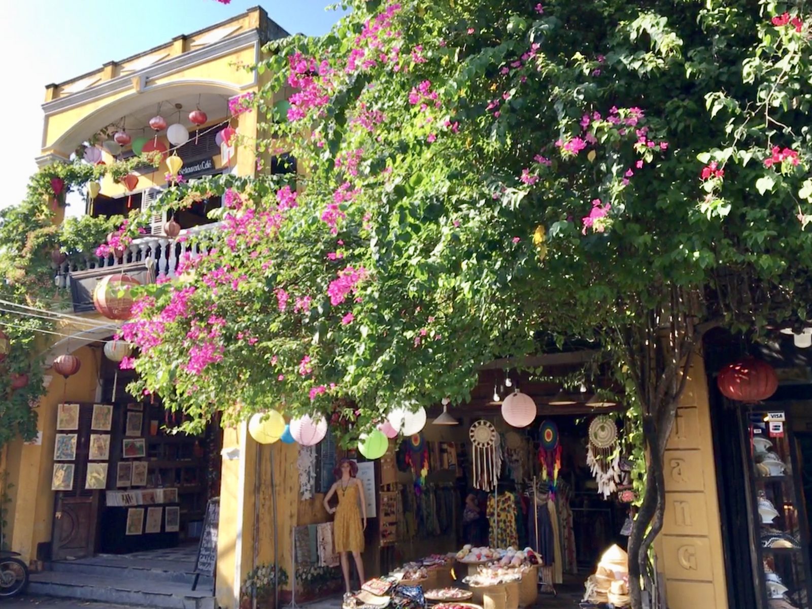 Retour dans la vieille ville cet après-midi: il y a un peu moins de monde et nous pouvons découvrir quelques unes des maisons anciennes qui font la réputation architecturale de Hoi An. Beaucoup d’entre elles sont devenues magasins, bars ou restaurants, mais certaines ont été bien conservées.