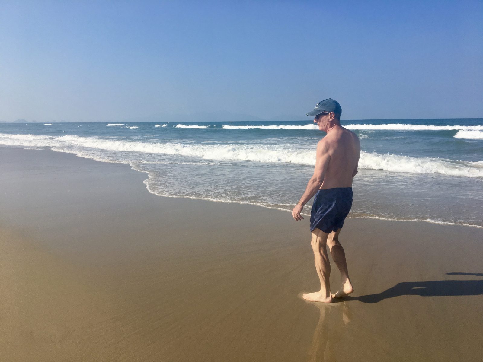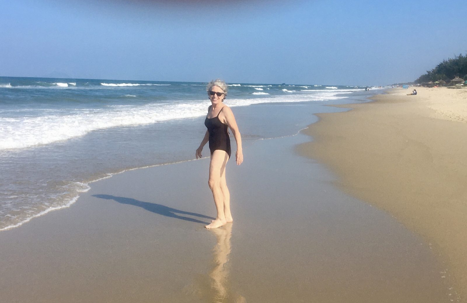 Et l’après-midi? plage. De belles vagues comme à Cape Hatteras, mais l’eau est délicieusement tiède et le sable doux et fin.