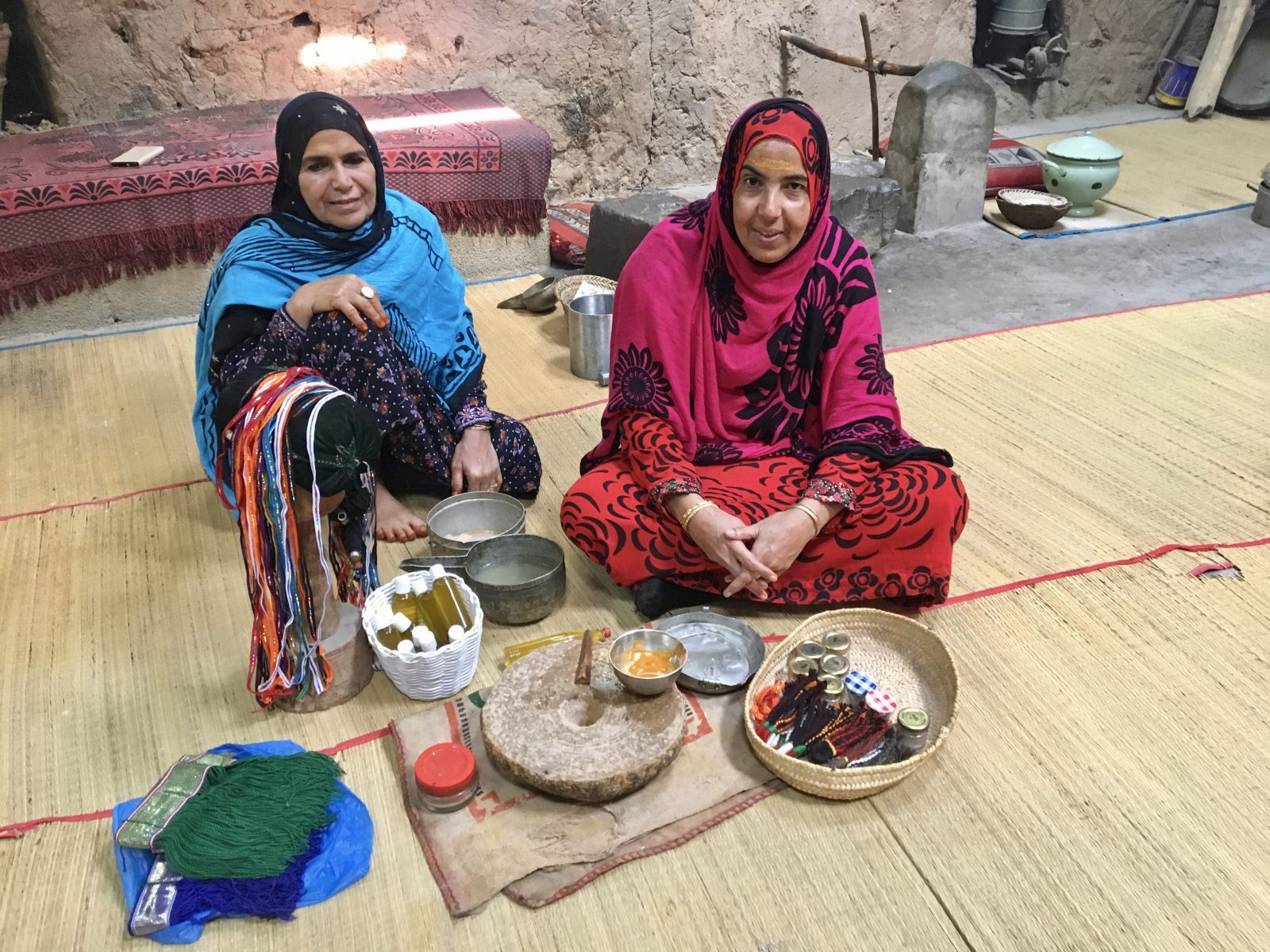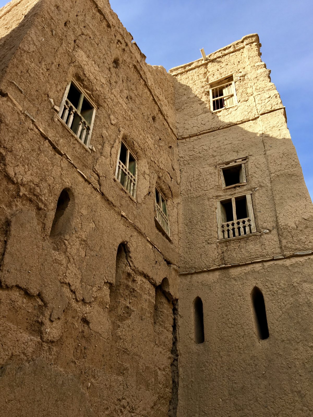 Dans les montagnes du djebel Hajjar,  nous visitons le village de Al Hamra, le rouge, qui porte bien son nom. Les maisons construites il y a plusieurs siècles, sont plutôt délabrées, mais les plus  belles sont restaurées et nous visitons les plus typiques, presque des musées, où nous apprenons tout sur la fabrication du sirop de datte et d’une huile qui soigne tout ou presque.