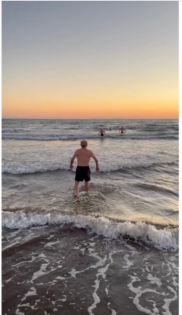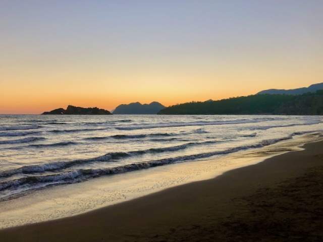 On n’a pas vu les tortues mais, jouer dans les vagues au coucher du soleil, quel bonheur!