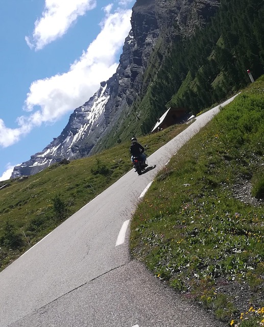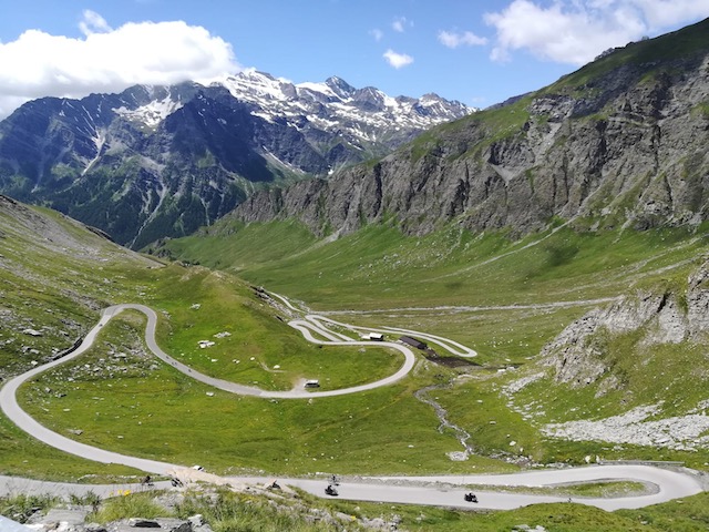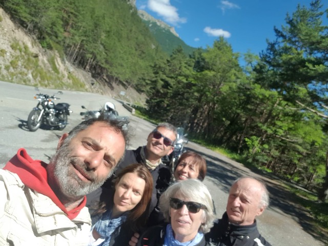 Et voilà enfin, début juillet, le vrai week-end moto sous un soleil radieux: jolies routes sinueuses, col Agnel, déjeuner italien à Chianale.