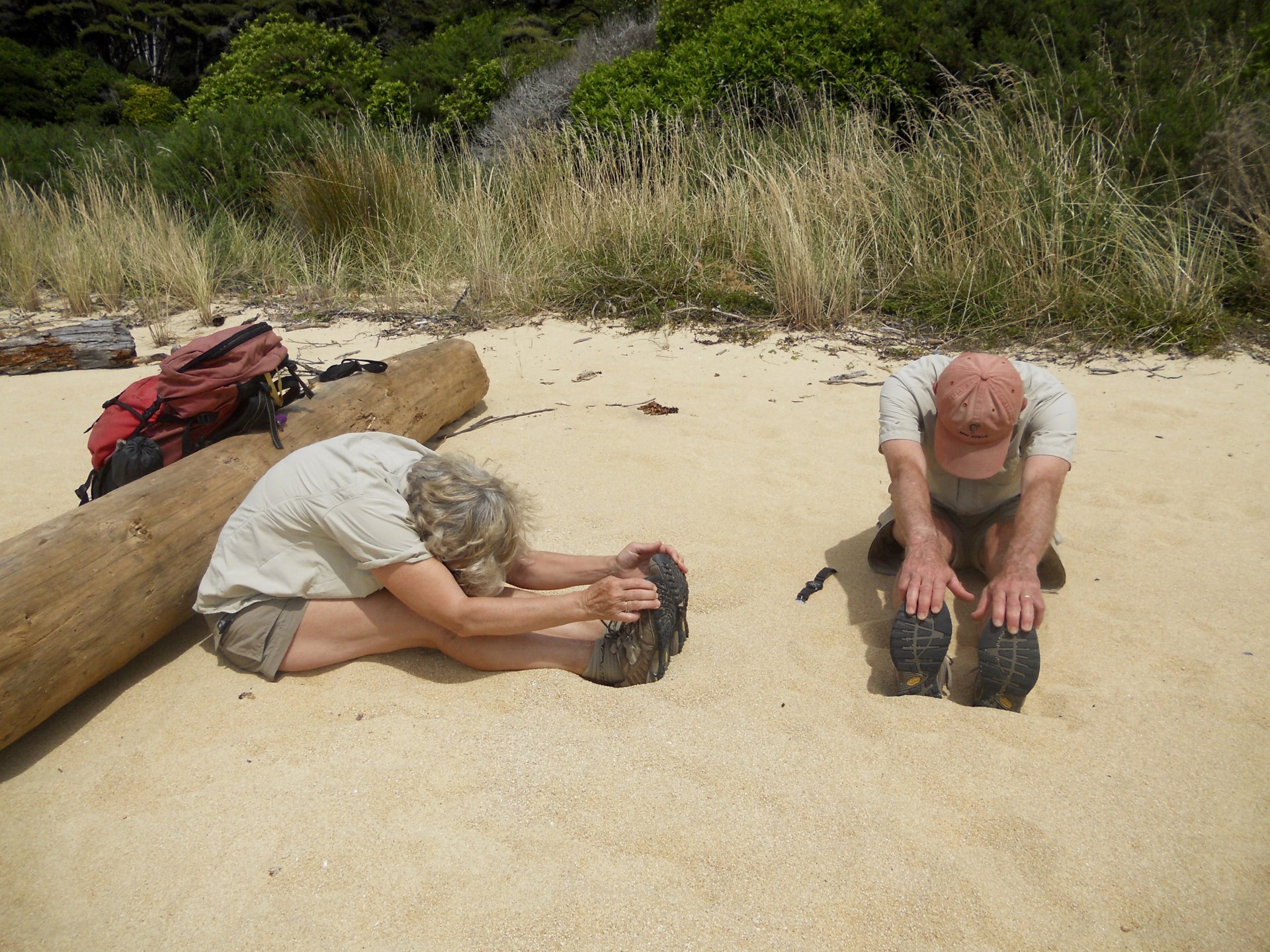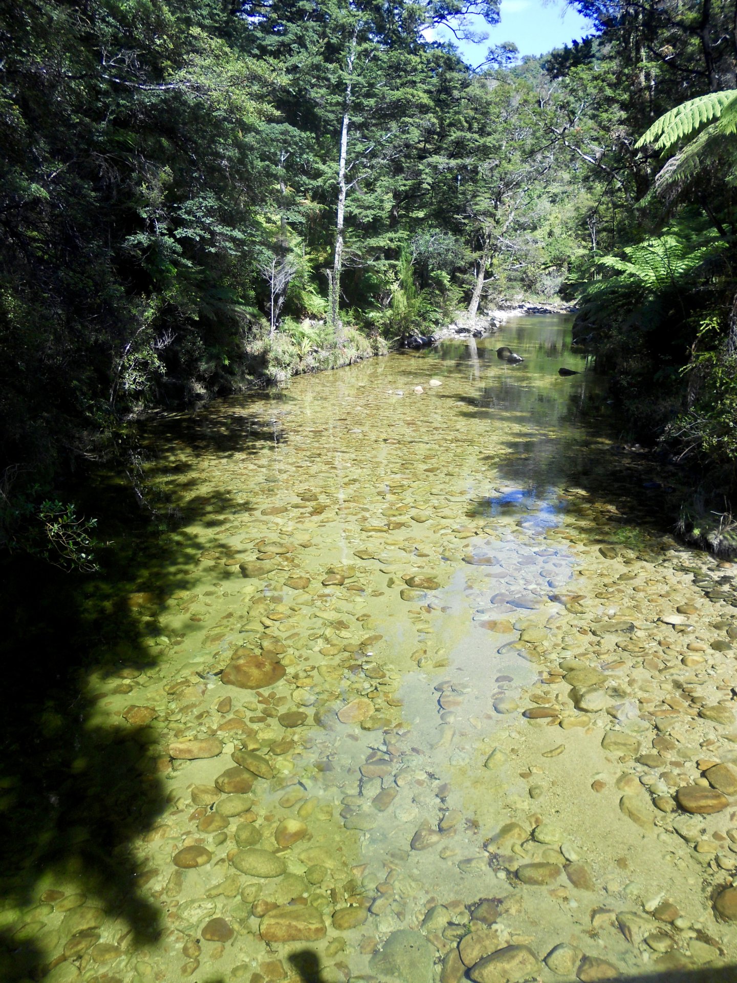 J’avais toujours rêvé de me lever un jour à six heures du matin pour partir le ventre vide tremper mes pieds dans l’eau froide de Awaroa Bay et marcher pieds nus sur des coquillages bien coupants: et bien voilà, c’est chose faite!