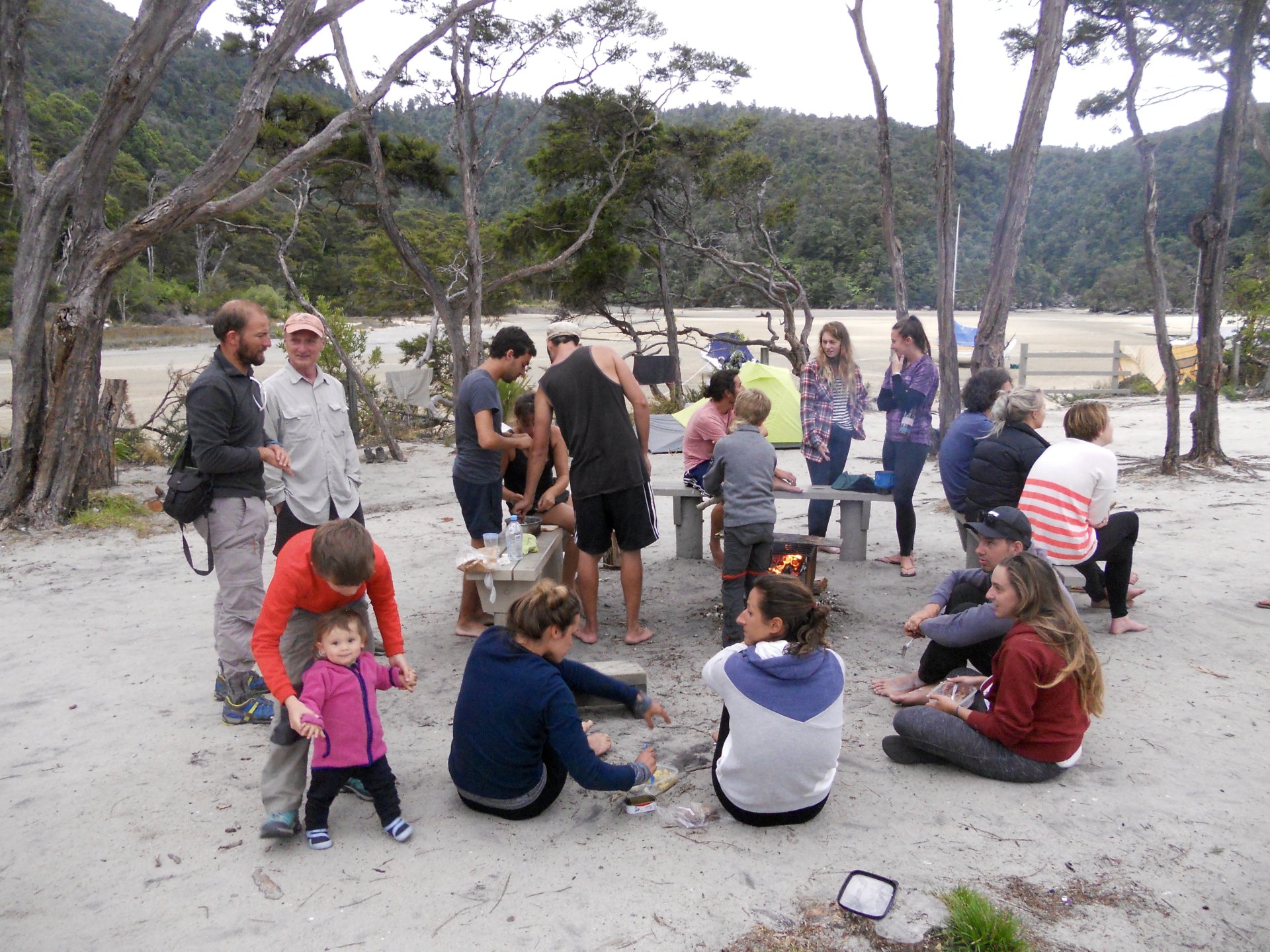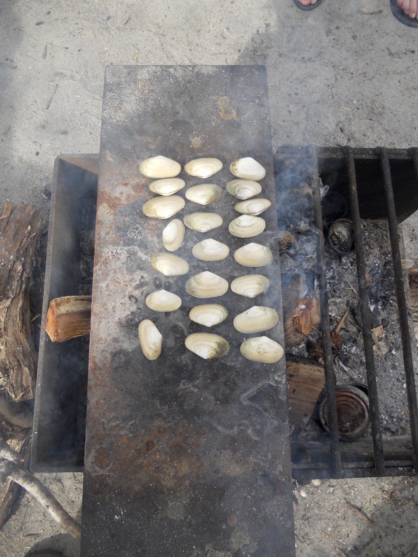 dscn2446Tout a commencé par la rencontre inopinée sur la plage de Bark Bay entre un jeune couple hongrois et des bretons ramassant des coquillages pour les faire griller sur le barbecue. Les hongrois se régalent, enregistrent tout le procédé, et tombent le lendemain sur un plus très jeune couple de français – que vous connaissez probablement puisque vous lisez ce blog- à qui ils racontent toute l’affaire, ce qui ne tombe pas dans l’oreille d’un sourd. Justement nous dormons ce soir sur cette plage miraculeuse et partons à la pêche dès la marée basse, pour rapporter une casserole pleine d’amandes de mer que nous cuisons au barbecue sous l’oeil mi-curieux mi-étonné des campeurs que nous invitons à venir goûter: et peu de temps après, la moitié du camping est autour du barbecue à se brûler les doigts pour déguster les coquillages, toutes les nationalités, et même des bretons: la boucle est bouclée, tout le monde se régale et la soirée improvisée est des plus réussies. Et vive les bretons!