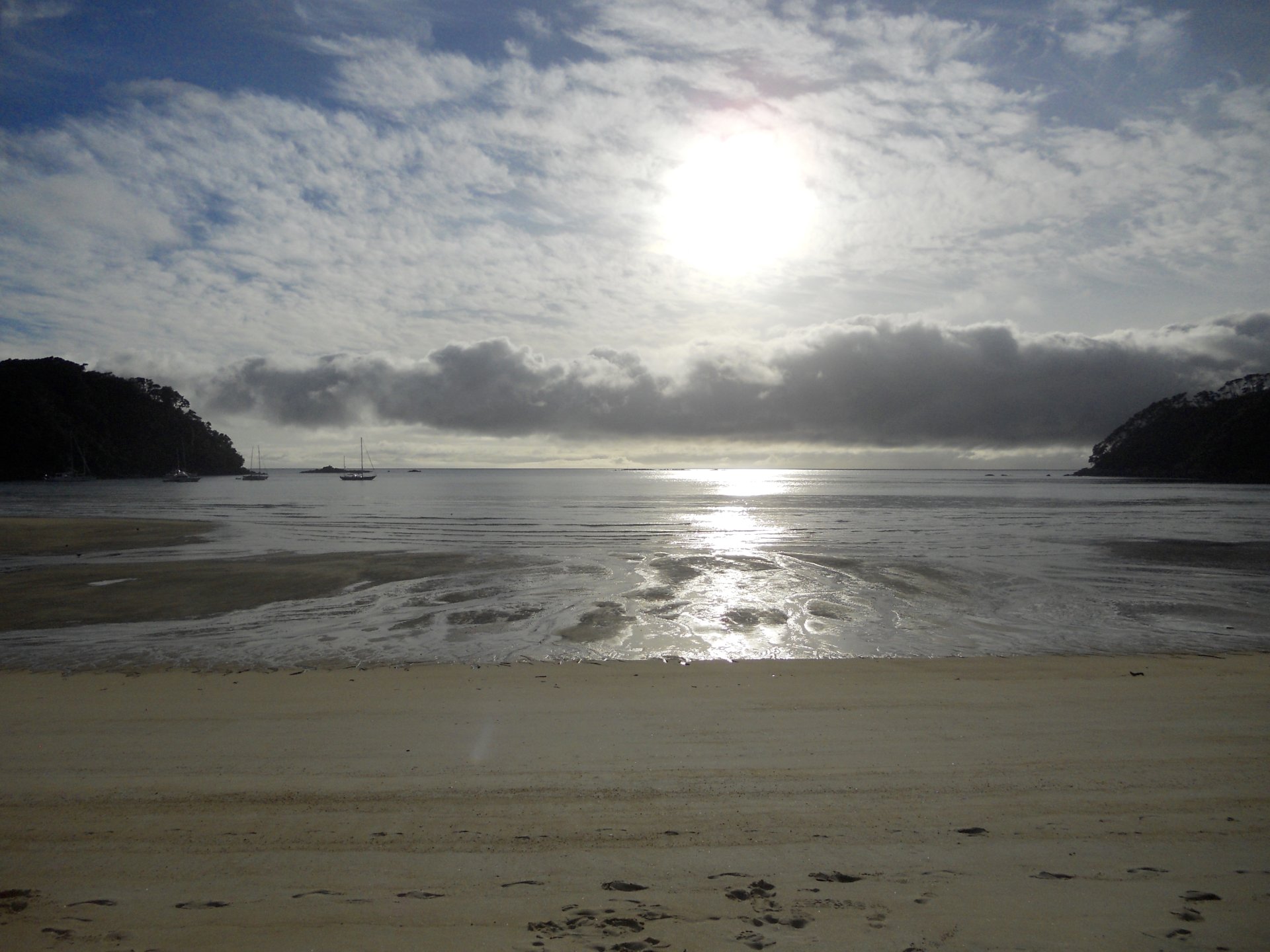 J’avais toujours rêvé de me lever un jour à six heures du matin pour partir le ventre vide tremper mes pieds dans l’eau froide de Awaroa Bay et marcher pieds nus sur des coquillages bien coupants: et bien voilà, c’est chose faite!