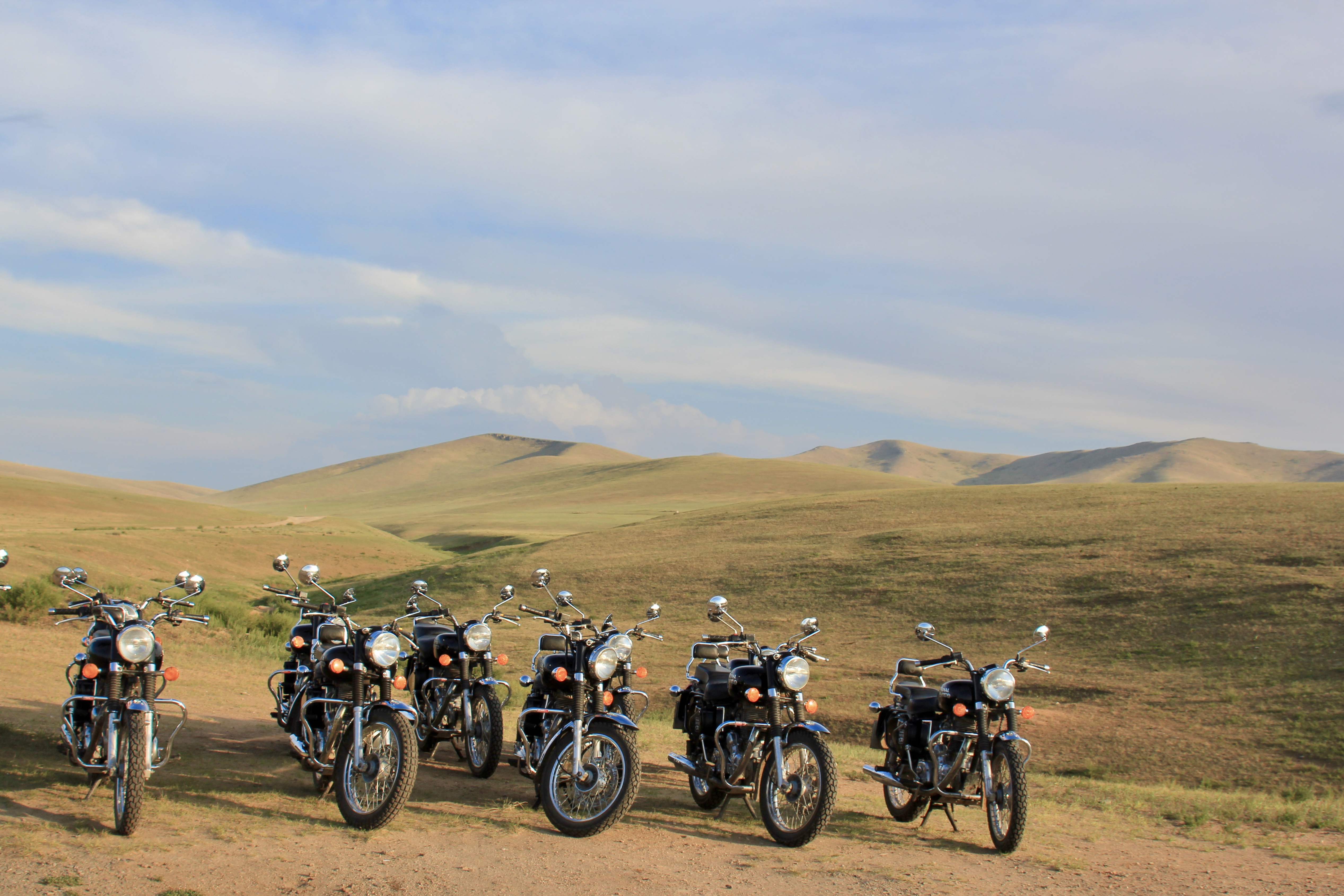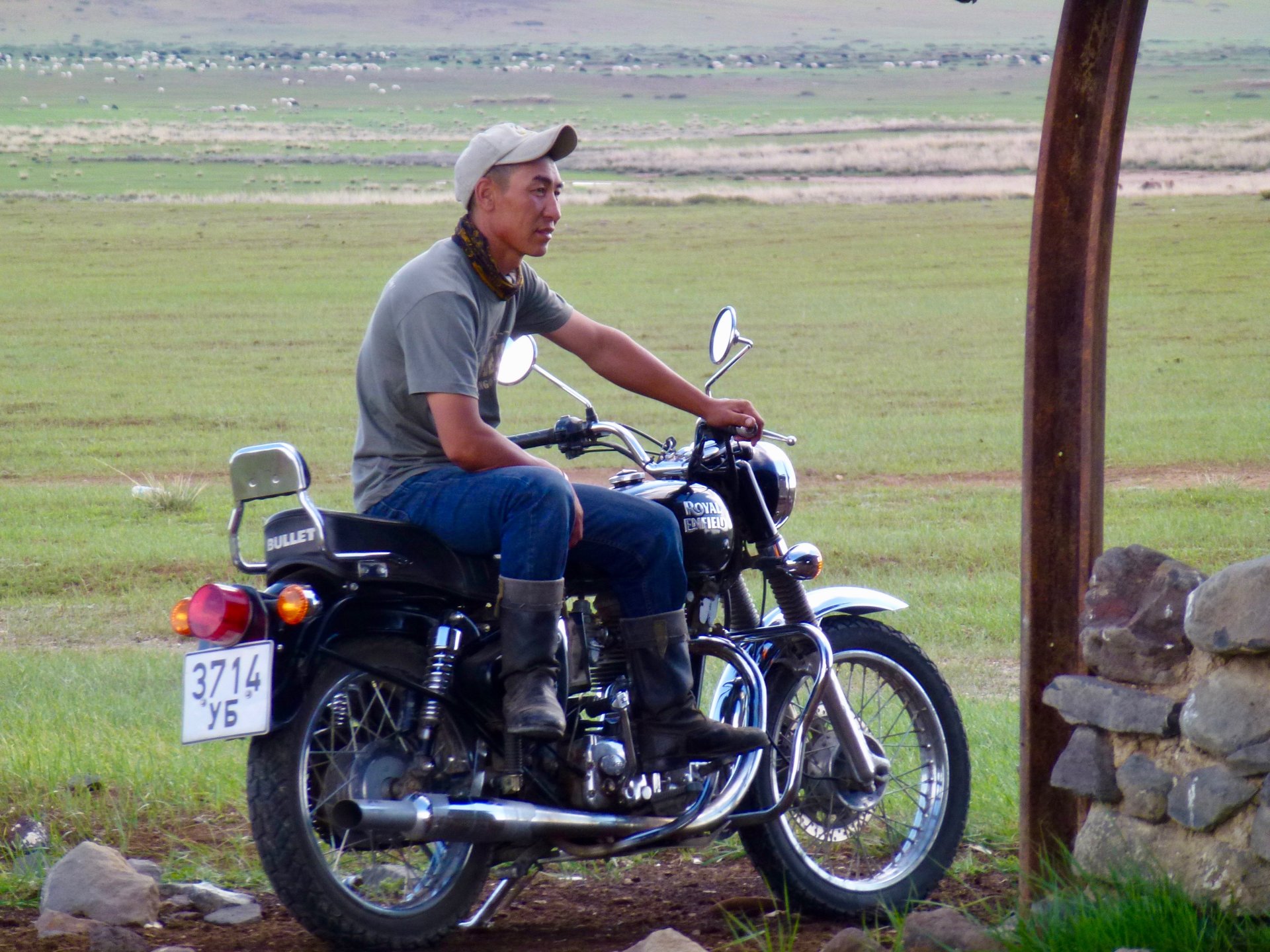 Puis quelques points d’eau apparaissent où les animaux viennent se désaltérer. Le doux ronronnement des Royal Enfield les fait fuir, tous ensemble, c’est magnifique. Les moutons d’abord: le premier s’enfuit et, vous connaissez l’histoire, les autres suivent sans réfléchir. Les chèvres sont moins farouches, et les vaches ne sont pas trop adeptes de la course à pattes, il faut vraiment les déranger pour les faire bouger.