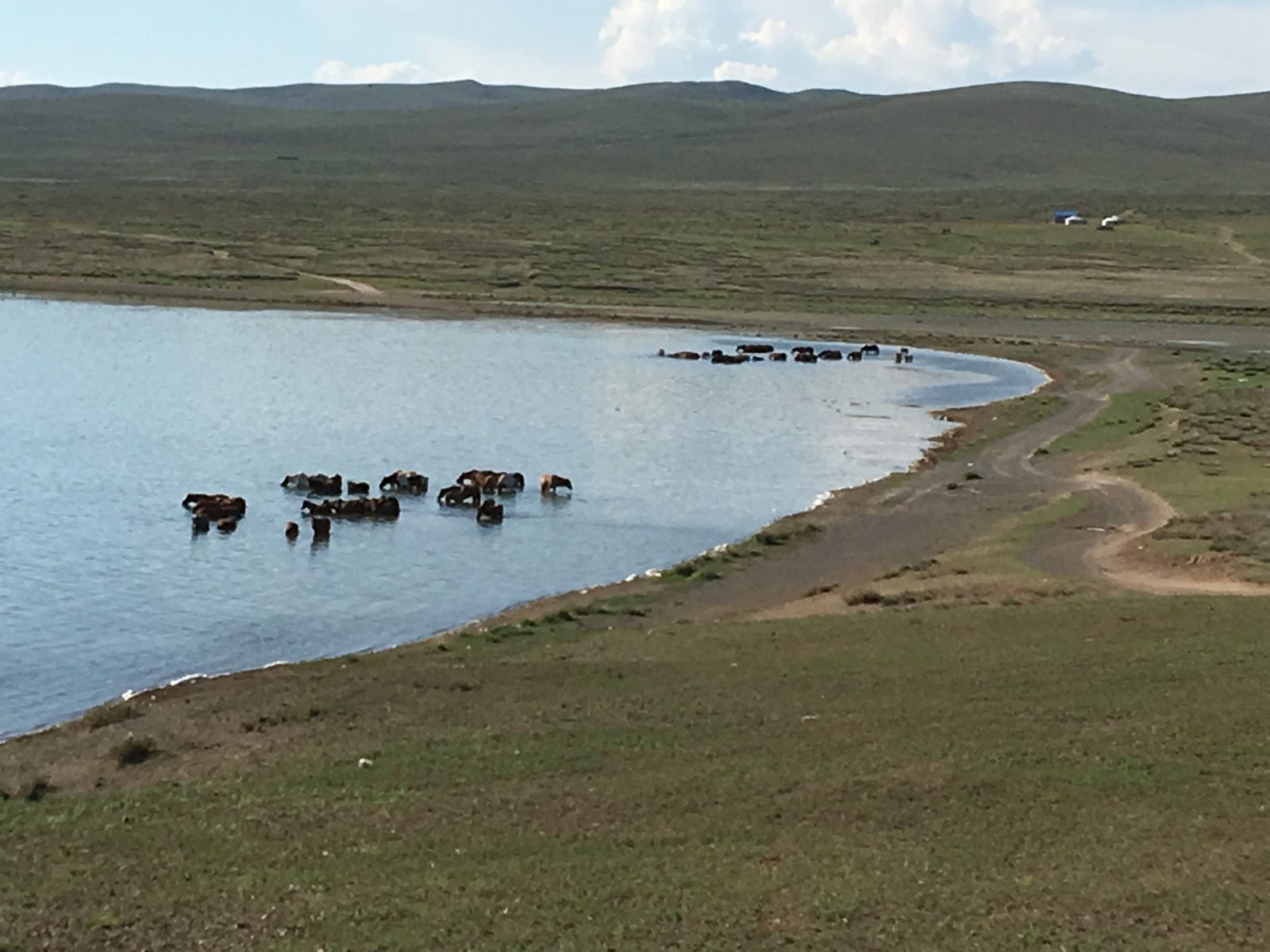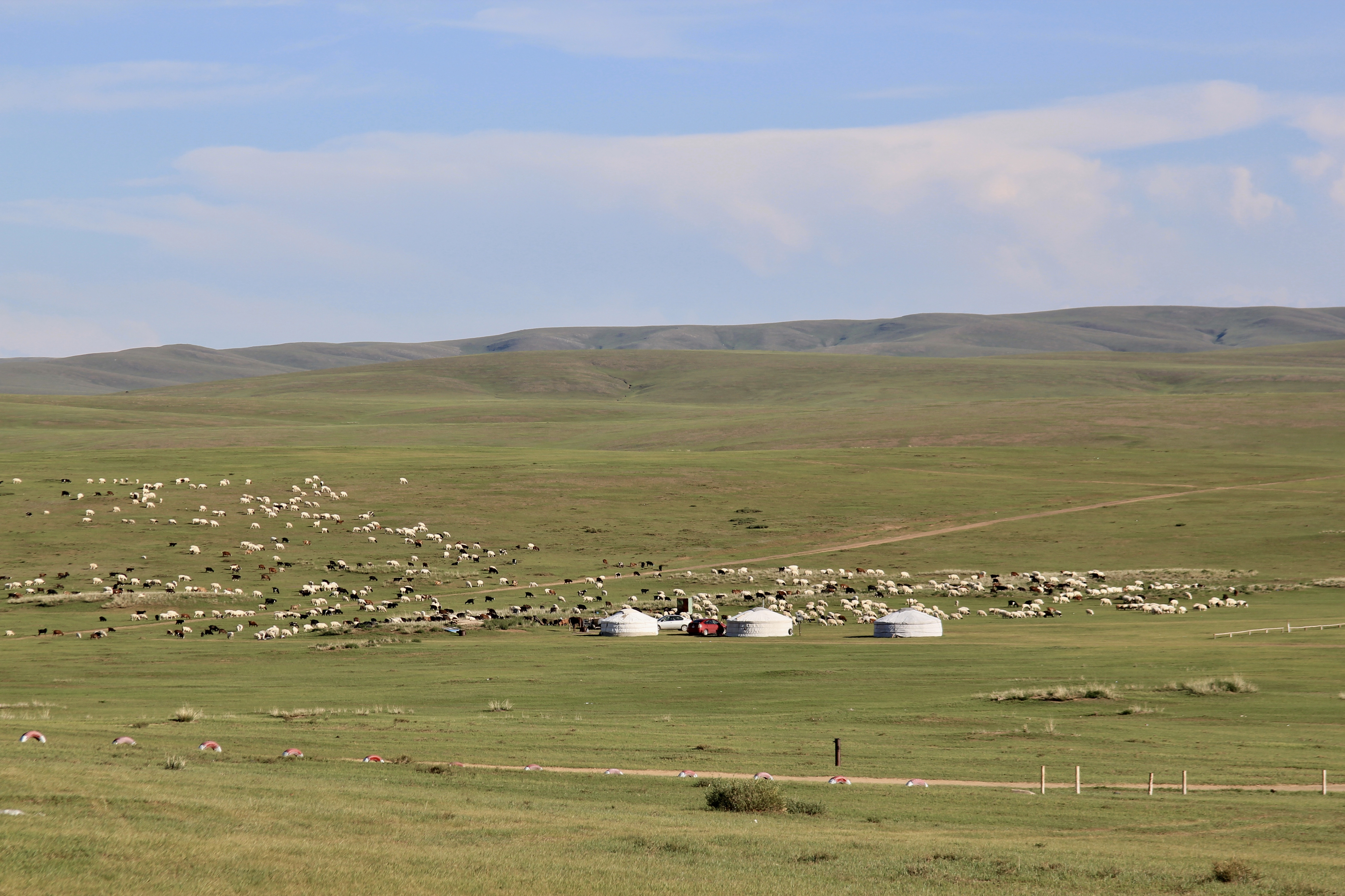 Nous traversons la grande steppe mongole, cet espace sans limites, presque désertique, où d’immenses troupeaux peinent à trouver leur pâture.
