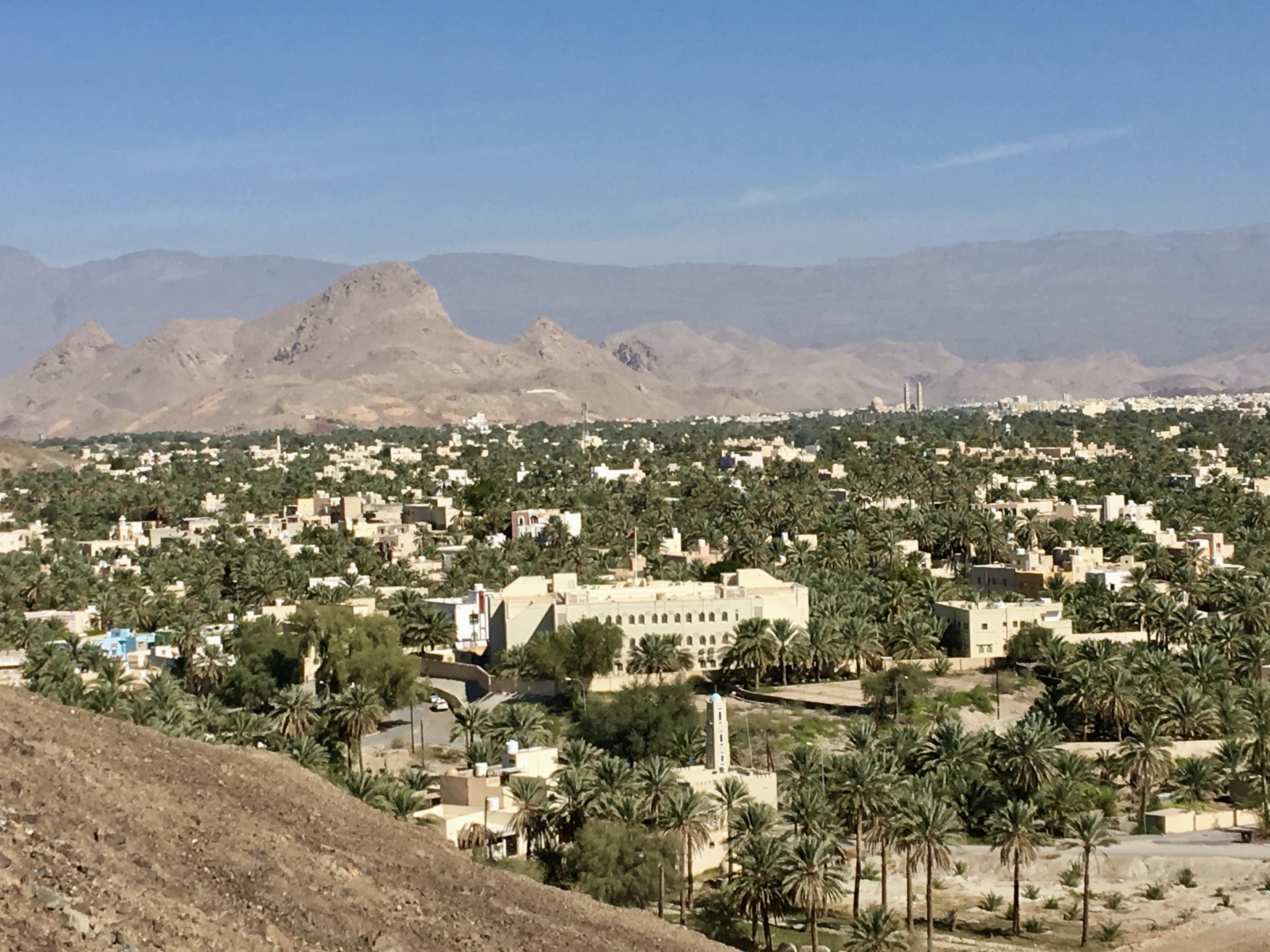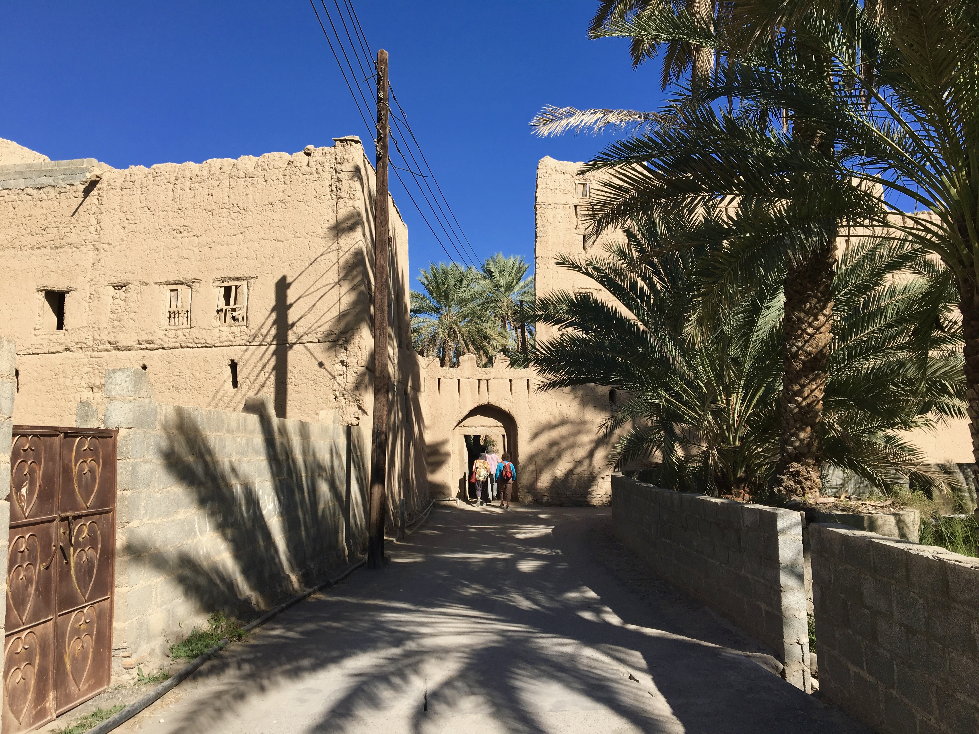 Nous quittons les montagnes au petit matin et traversons Bahla, ville de la vallée avec de bien jolies maisons. Elles sont toutes très grandes pour y loger une famille élargie. Parents, grands parents, enfants puis s’y ajoutent les familles des fils, cela donne facilement une quinzaine de personnes ou plus, il faut de la place. Quand il n’y en a plus assez, on construit une autre maison, à côté pour être près les uns des autres. La famille est très soudée et les réunions familiales, fréquentes, prennent des allures de banquets.