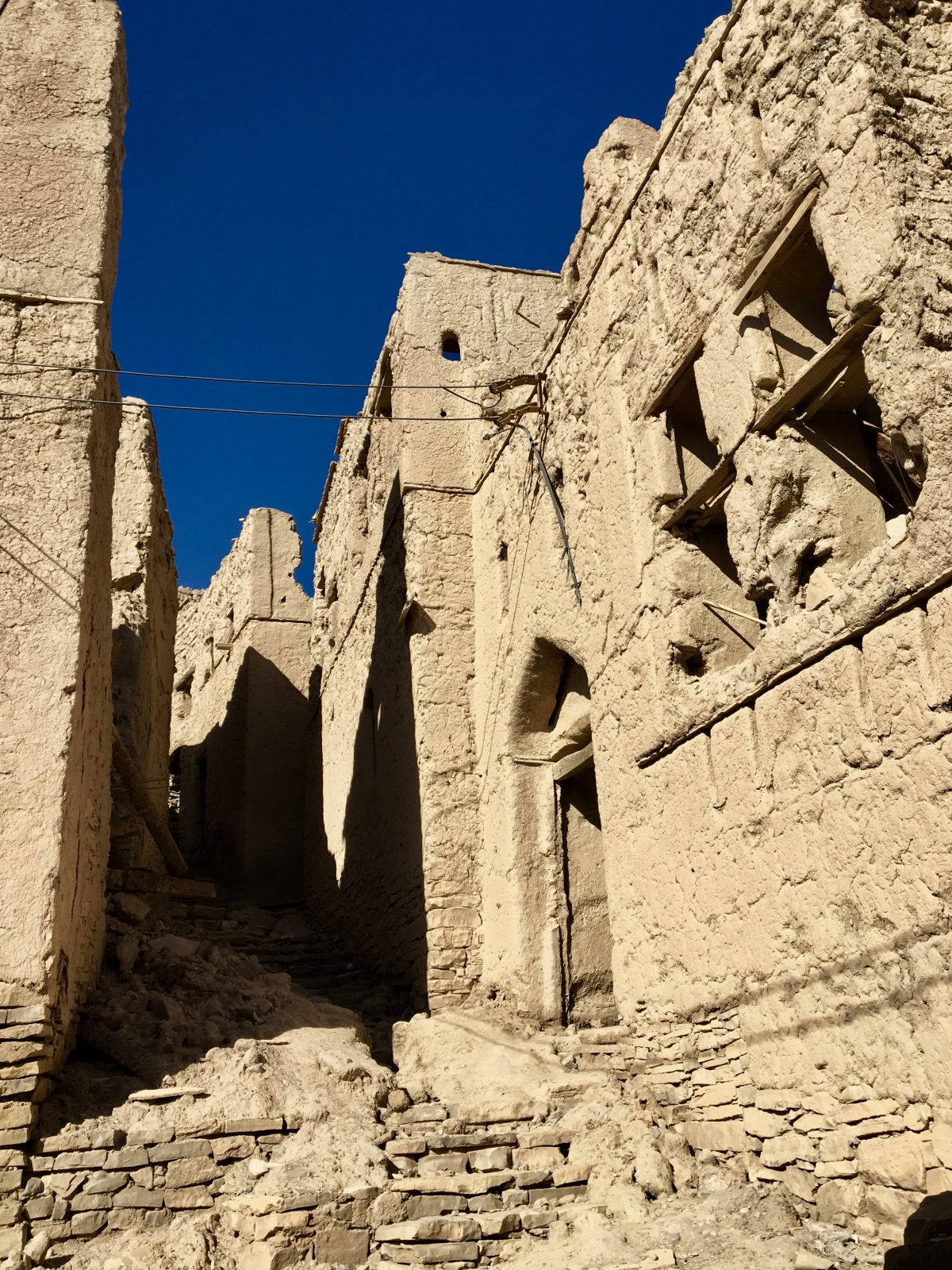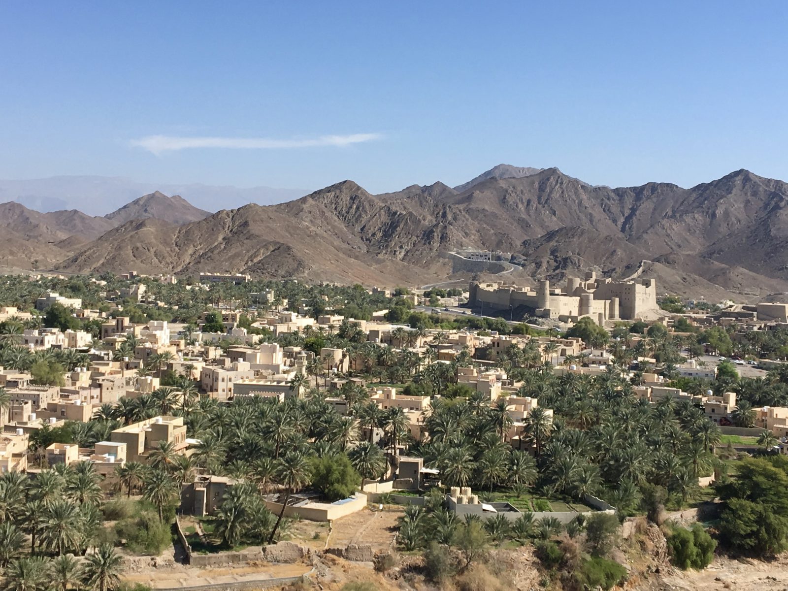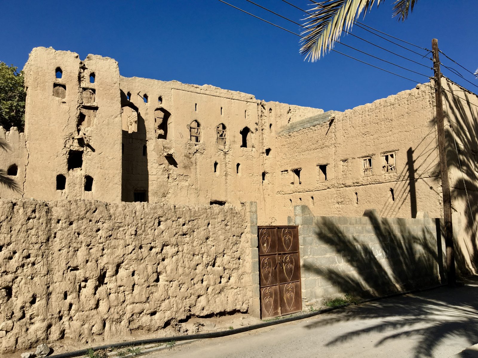 Nous quittons les montagnes au petit matin et traversons Bahla, ville de la vallée avec de bien jolies maisons. Elles sont toutes très grandes pour y loger une famille élargie. Parents, grands parents, enfants puis s’y ajoutent les familles des fils, cela donne facilement une quinzaine de personnes ou plus, il faut de la place. Quand il n’y en a plus assez, on construit une autre maison, à côté pour être près les uns des autres. La famille est très soudée et les réunions familiales, fréquentes, prennent des allures de banquets.