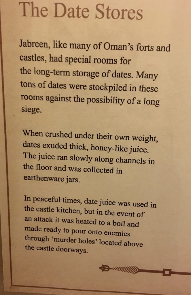 En fait, le jus de datte bouillant était versé sur les attaquants par des trous prévus à cet effet au dessus de la porte d’entrée. Cela vaut bien notre huile bouillante.