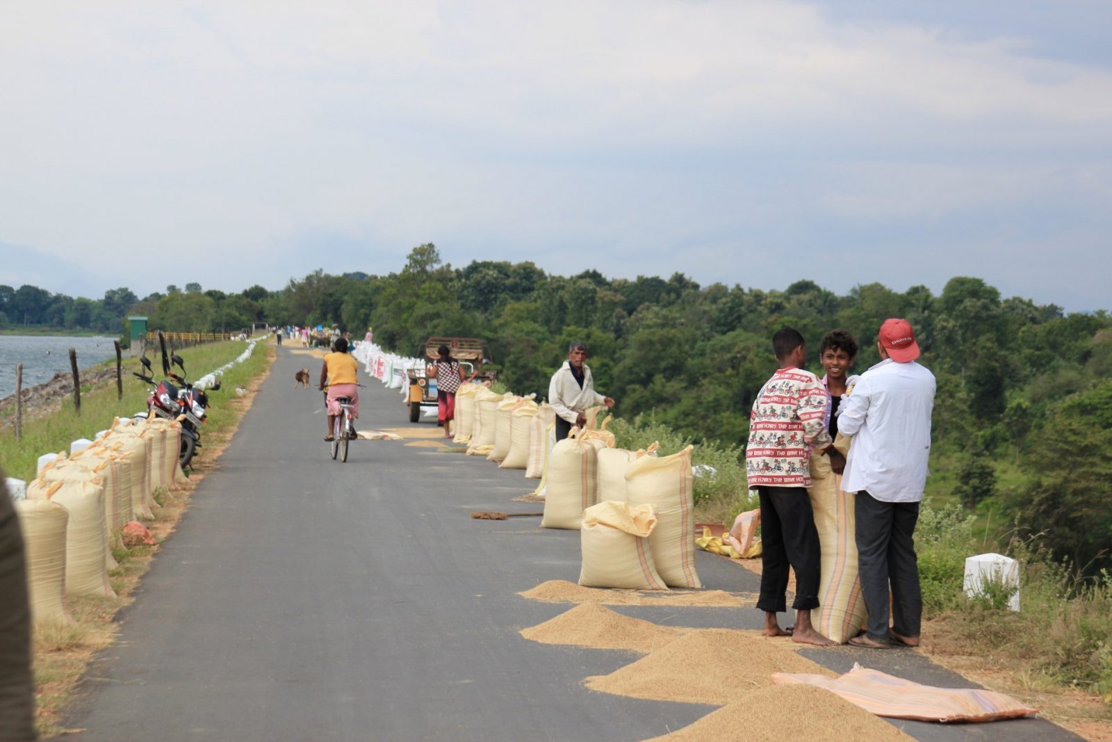 Longue route aujourd’hui vers le centre de l’île, heureusement la circulation est nettement moins dense et dangereuse qu’en Inde. La pluie  ne va pas tarder, vite, il faut rentrer le riz qui sèche sur la route: