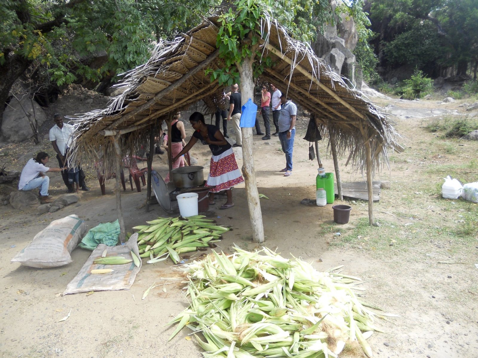 Pause maïs et café sur la route, puis pique-nique au bord de la rivière: