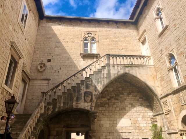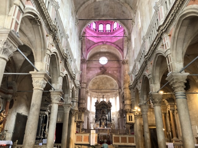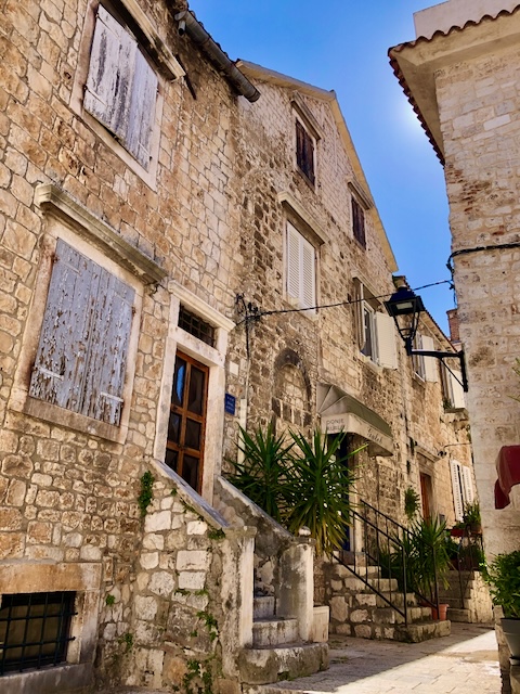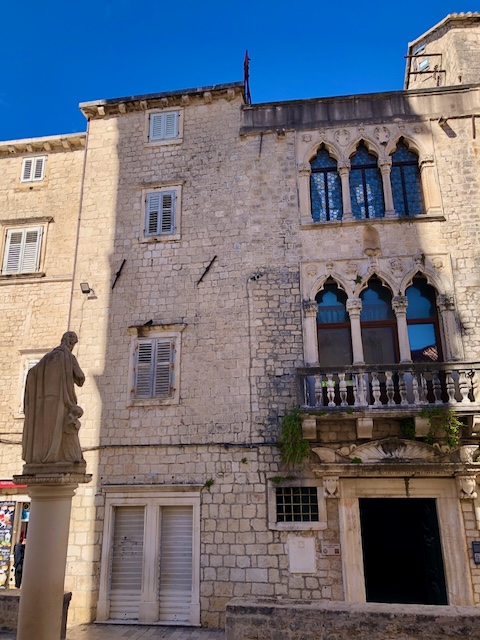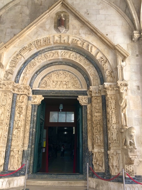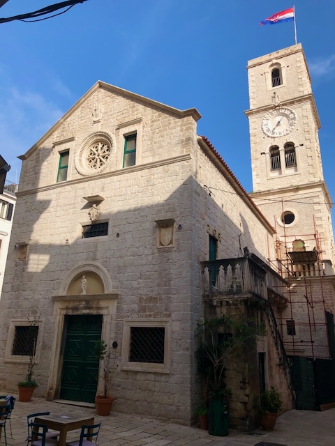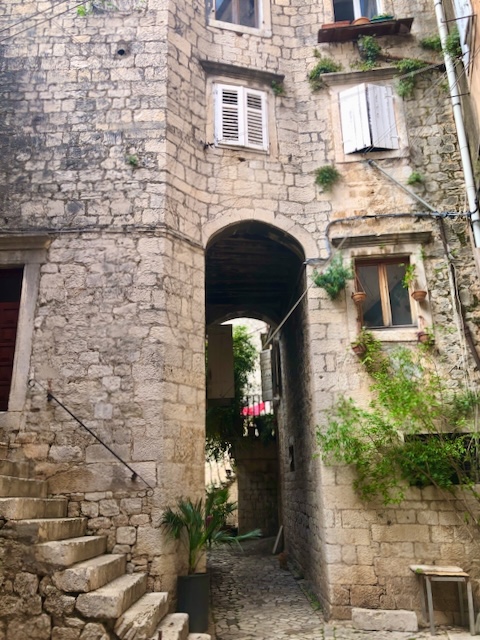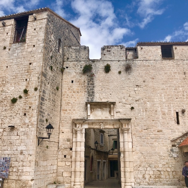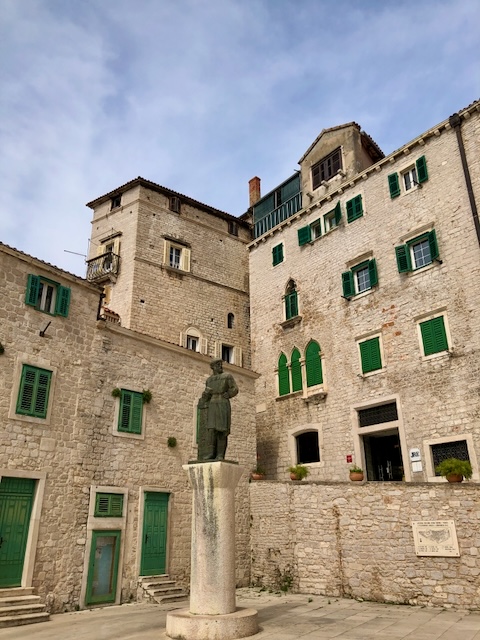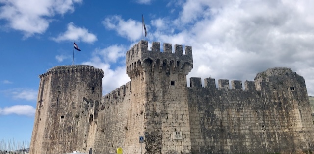 Première étape à Trogir, une magnifique cité médiévale, avec ses murailles et ses tours, son château, sa cathédrale, ses ruelles pavés bordées de jolis édifices, son passé vénitien, bref un parfum d’Italie propice à la balade.