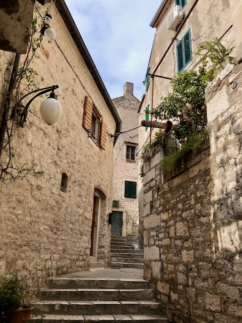 C’est une bien jolie ville fondée au X ème siècle au bord de la mer, au fond d’une baie si profonde que l’on ne voit encore pas la mer. Mais l’estuaire de la rivière Krka (prononcer Keurka) est majestueux.