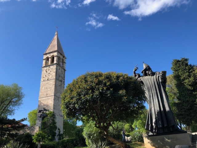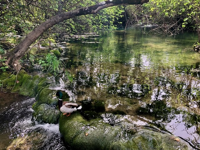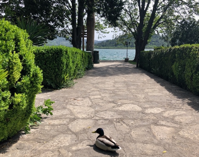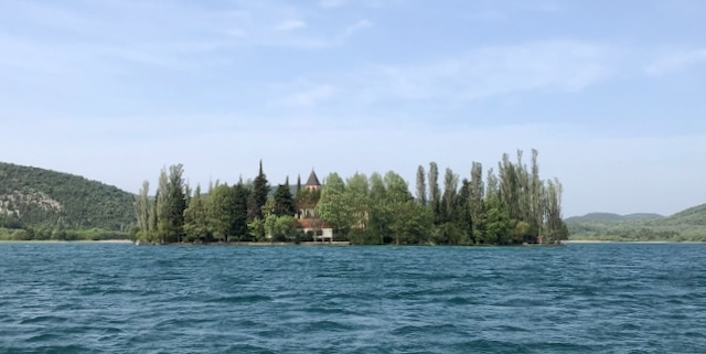 Puis nous prenons un bateau pour aller voir l’ilot de Visovac, perle du patrimoine croate, où se cache un monastère franciscain. Nous sommes peu nombreux à faire la visite, et c’est un lieu magique, reposant, et d’une grande quiétude, où manifestement les canards ont élu domicile.