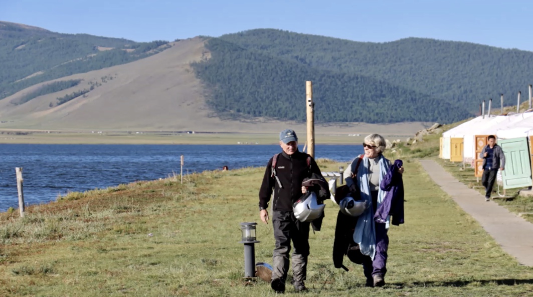 Une jolie piste dans la forêt pleine de méchantes ornières et de vilaines racines qui nous guettent au tournant, puis nous arrivons aux sources d’eau chaude de Tsenkher pour un bain bien délassant après cette intense journée.