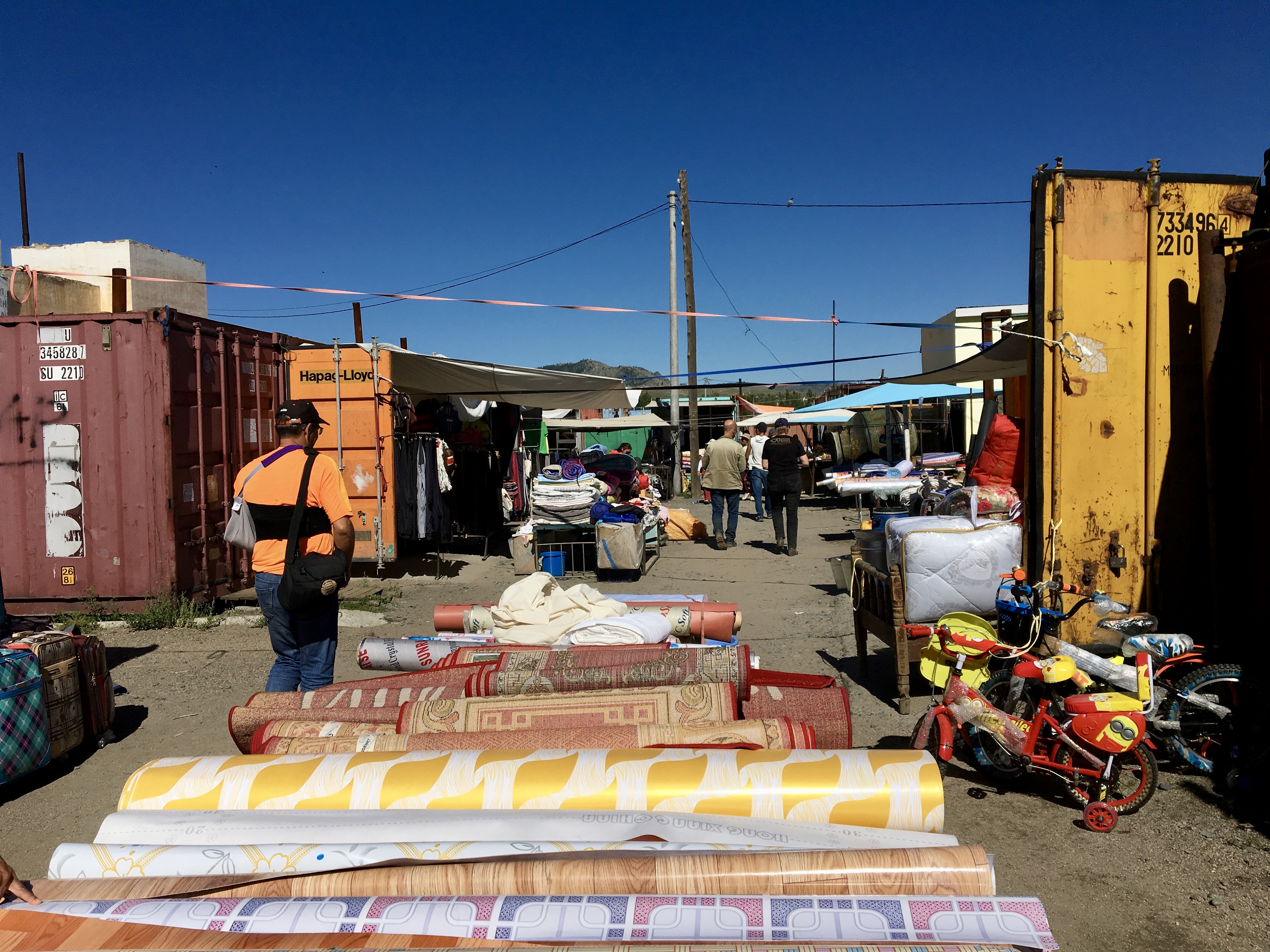 Un petit tour au marché local de Tsetserleg où l’on peut acheter les véritables bottes mongoles (présentées ici par Xavier)