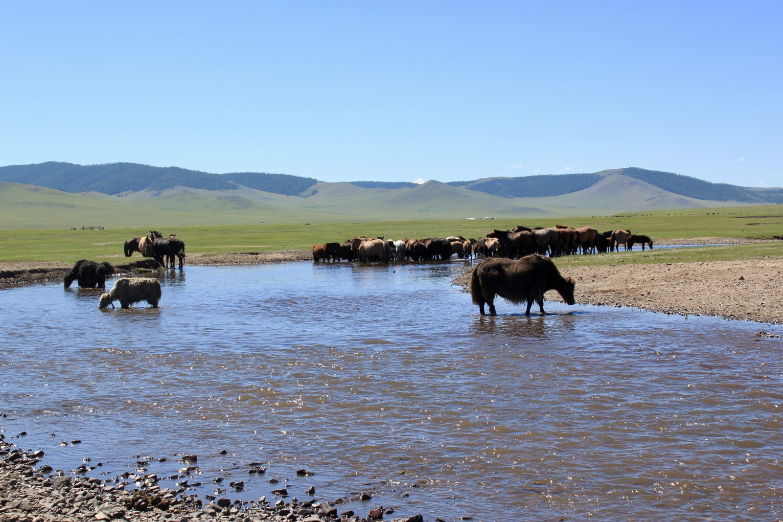 C’est une sensation de liberté absolument grisante que nous partageons, en toute complicité, lorsque les prairies s’ouvrent à l’infini, jalonnées ou non de quelques yourtes blanches, et que nous roulons à toute allure les uns à côté des autres en occupant toute la place voulue: la chevauchée sauvage dans toute sa splendeur, peut-être est-ce que nous sommes venus chercher ici, la Mongolie telle qu’on la rêvait. Un vrai dépaysement.
