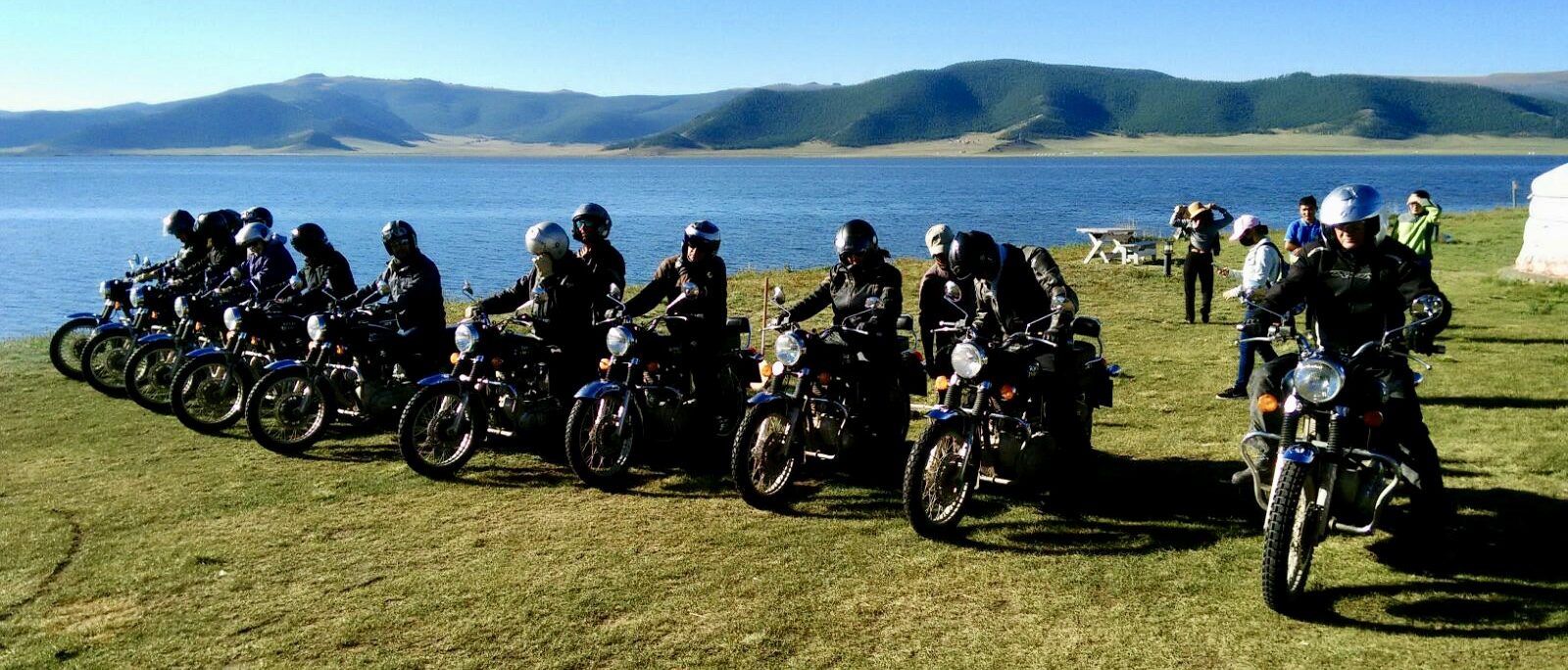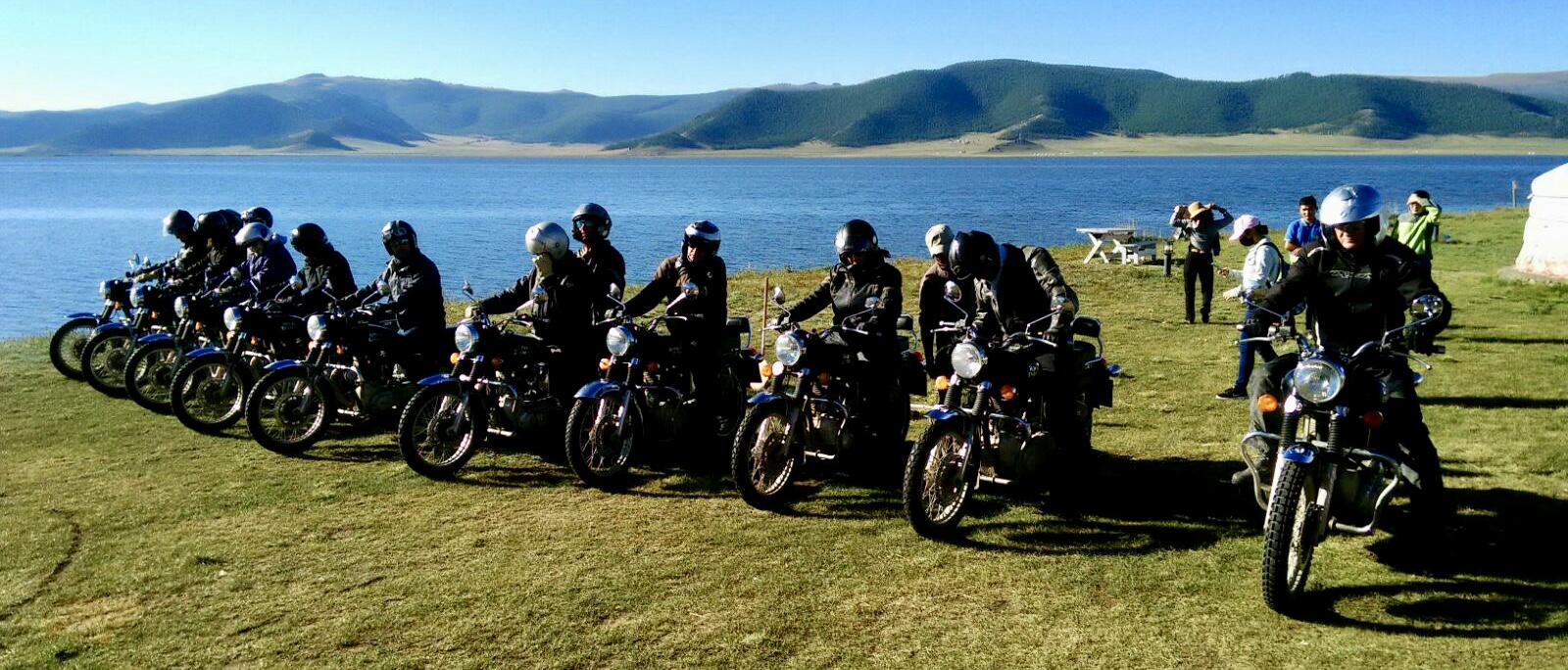 A la pause café, les motos sont squattées par une bande de touristes qui se prennent en photo sur les Bullet avec nos casques: