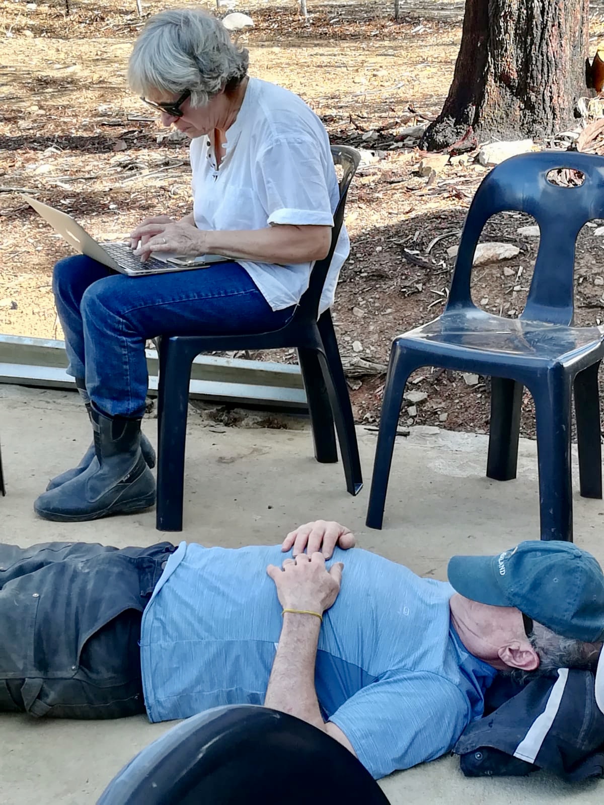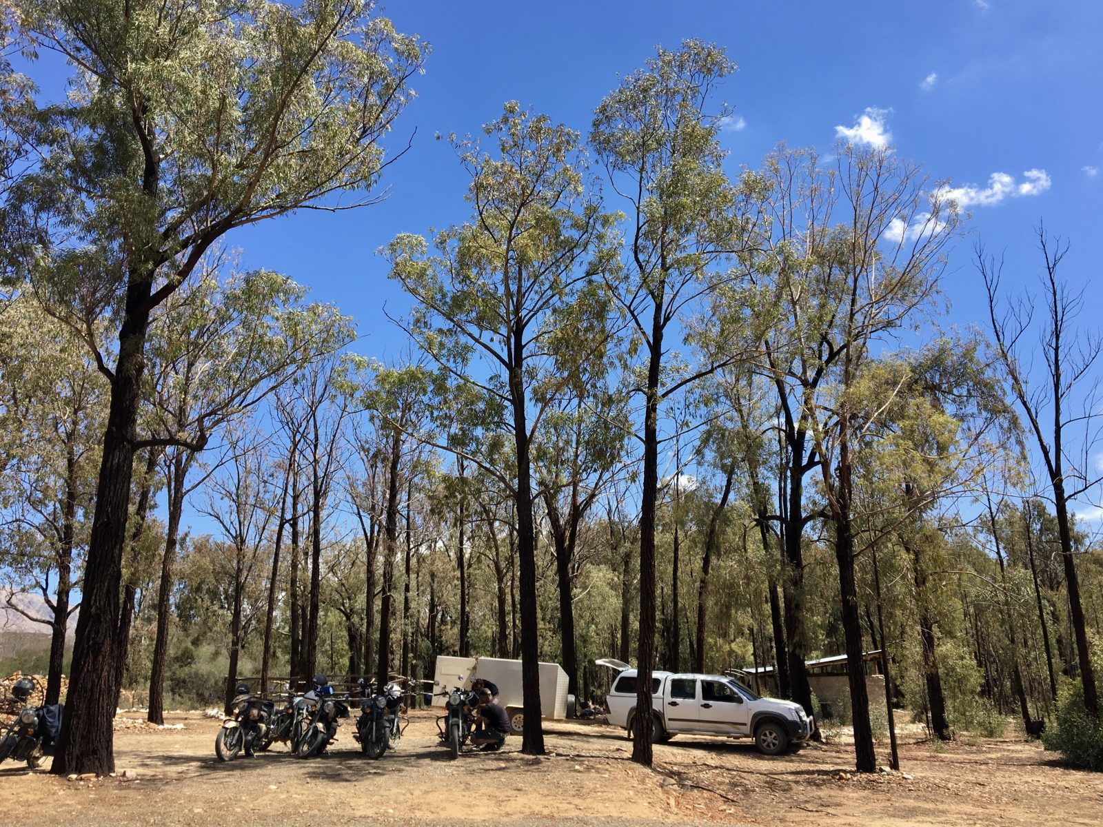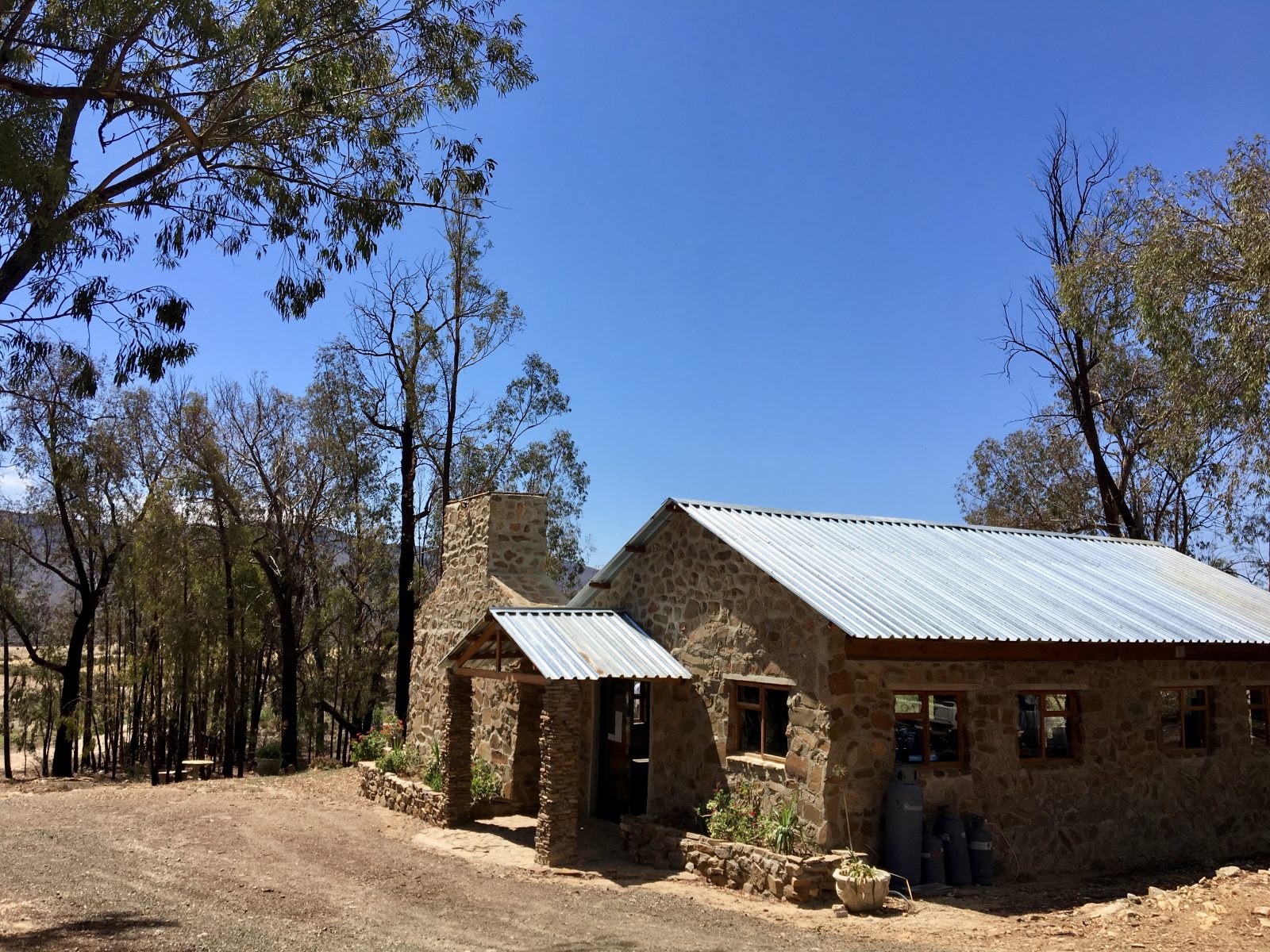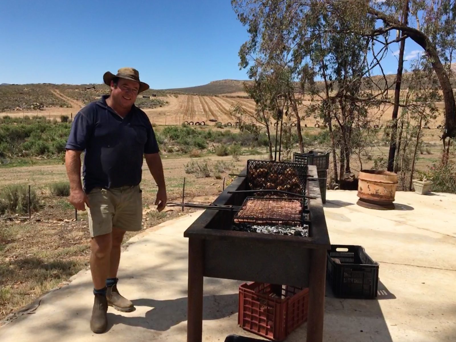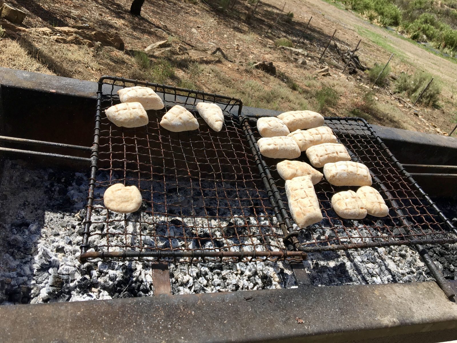 Déjeuner chez des fermiers manifestement rompus à l’exercice du barbecue sur lequel ils feront cuire le pain après le poulet et l’agneau. Les montagnes alentour sont plutôt désertiques, il ne tombe pas plus de 40 mm de pluie par an.