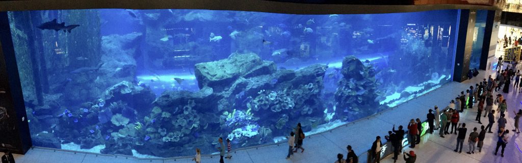 Néanmoins, il ne reste qu’environ 10% d’émiratis, et Dubaï est une ville plus que cosmopolite. Ce mall ultramoderne nous montre, outre un spectaculaire aquarium géant avec requins, raies etc..