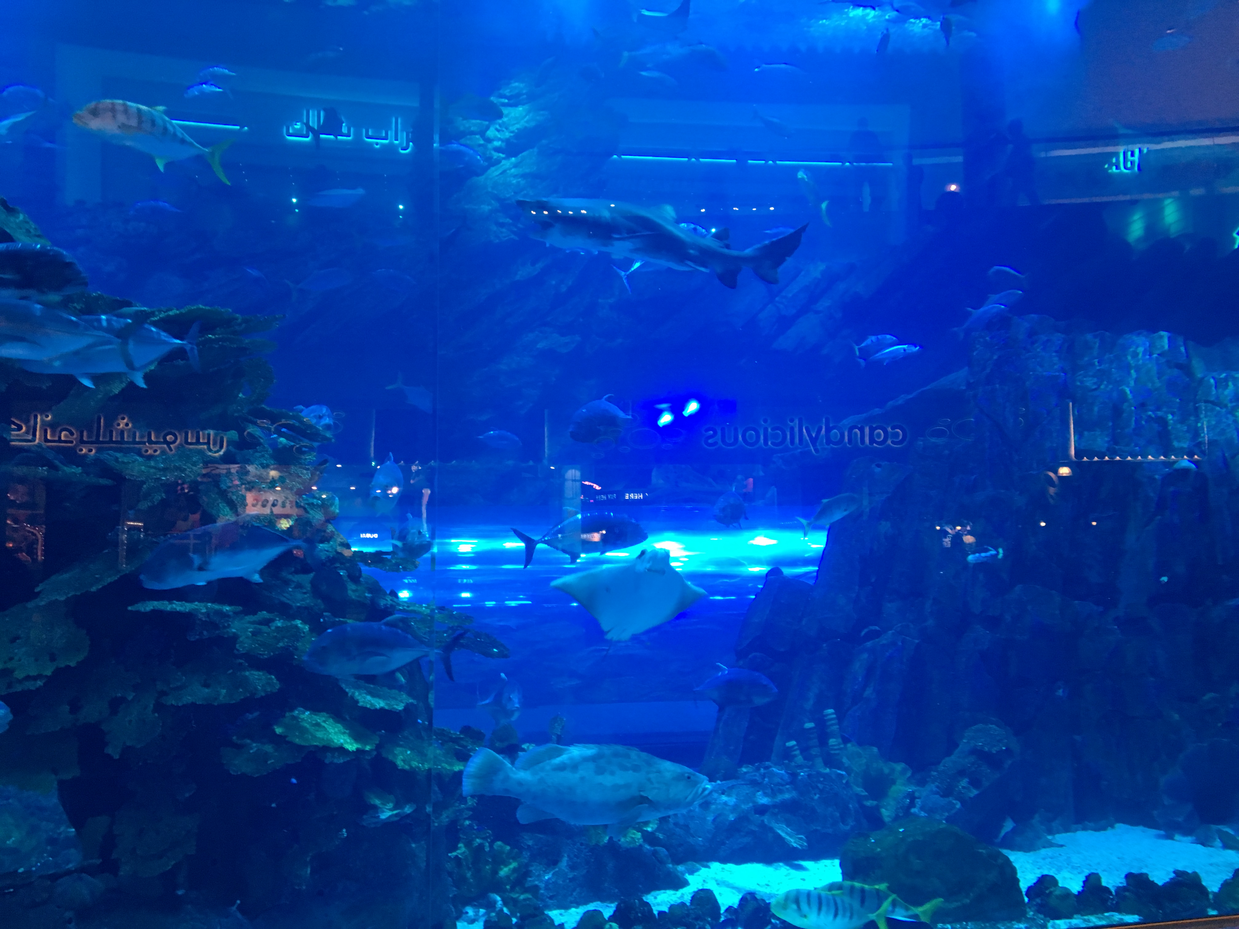 Néanmoins, il ne reste qu’environ 10% d’émiratis, et Dubaï est une ville plus que cosmopolite. Ce mall ultramoderne nous montre, outre un spectaculaire aquarium géant avec requins, raies etc..