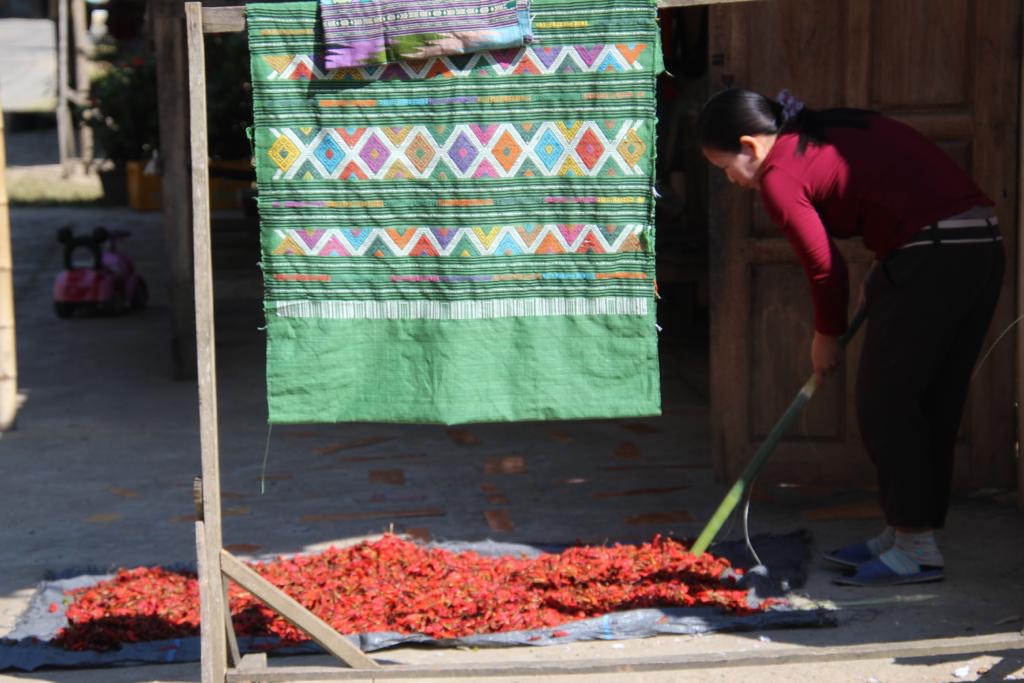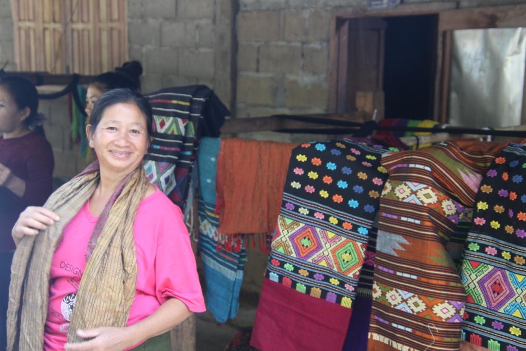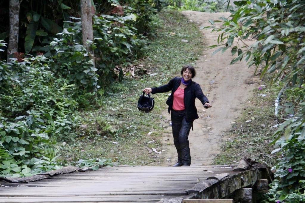 Nous traversons un village où une jeune femme travaille sur son métier à tisser et faisons une pause pour l’observer: en un rien de temps, de toutes les maisons sortent des femmes les bras chargés de jolis tissages faits à la main. Nous les admirons, en achetons quelques uns, directement à la source, nous faisons l’évènement, tout le monde est content.