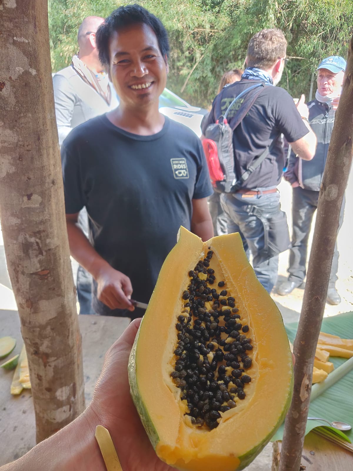 Des papayes sur la terrasse de notre case.