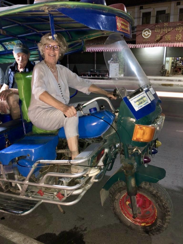 Un tuk-tuk pour aller diner en terrasse au bord du Mékong, c’est moi qui conduit au retour.