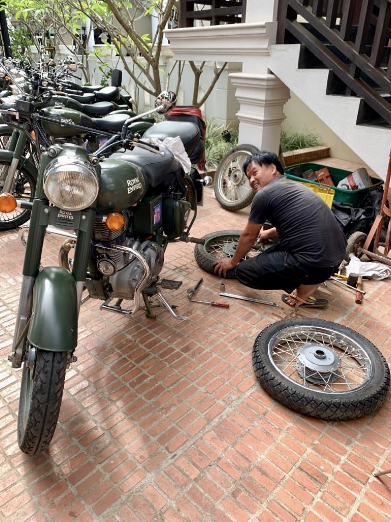 Au petit matin, les motos sont miraculeusement propres comme des sous neufs, briquées et inspectées par Teg.