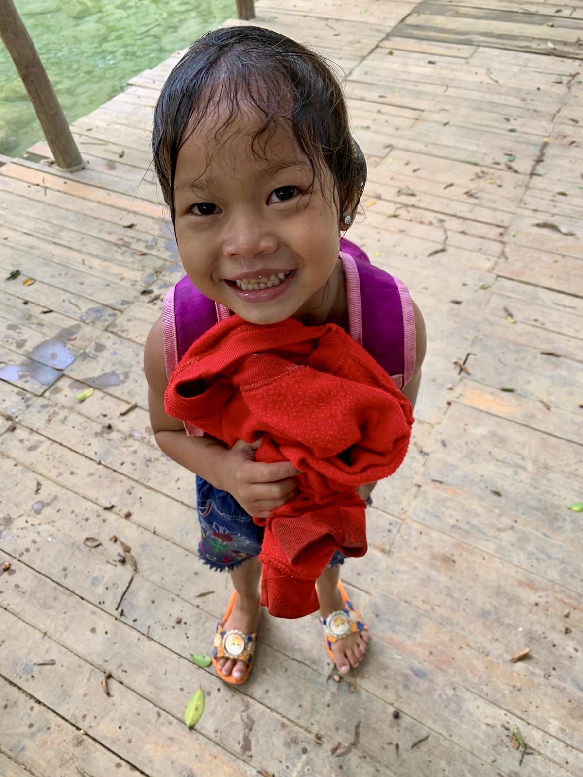 Nous racontons à David tout ce qu’il ne voit pas, mais il ressent beaucoup de choses, la montagne, le fleuve, les écoles pleines d’enfants, et il s’est forgé des références à lui. Il nous demande même parfois la couleur d’un fruit inconnu, et il goûte tout, même les scarabées grillés. Et puis on lui fait toucher tout ce qu’on peut, et il aime ça. On le fait marcher sur des sentiers chaotiques, et il suit toujours, il n’aime pas renoncer, il veut tout faire comme les autres, quelle volonté. Pourtant, ce n’est ps facile d’être passager sur ces routes difficiles sans pouvoir anticiper, il se fait bringuebaler mais jamais il ne se plaint,. Quelle belle leçon de vie il nous donne!