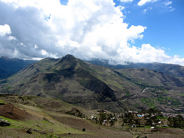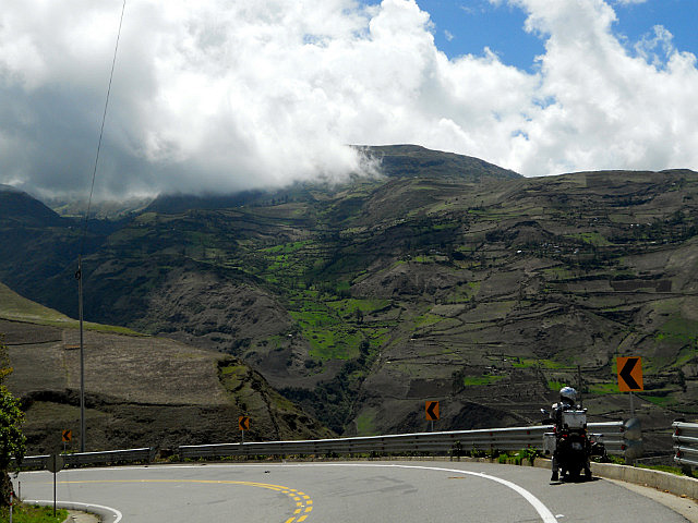 Et rejoignons la Panaméricaine qui traverse de superbes montagnes, alternativement verdoyantes et très cultivées, avec vaches, cochons, moutons, ânes -il y en a même un qui se promène à contre-sens sur l’autopista, avec sa carriole bien sûr- puis parfois très sauvages avec un paysage aride et une végétation rase.